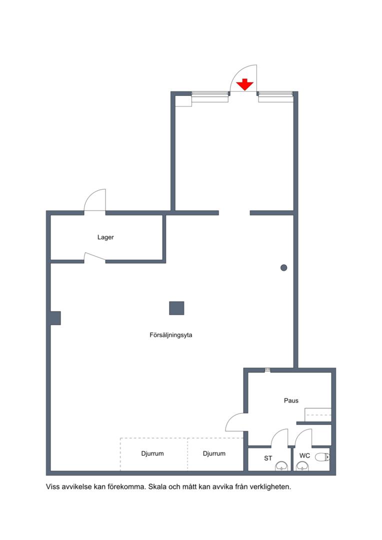 Utöver den generösa publikytan finns ett praktiskt pentry för personal samt fräscha faciliteter. Lokalen är i ett gott skick, redo för inflyttning och utgör en utmärkt plattform för såväl handel som service.