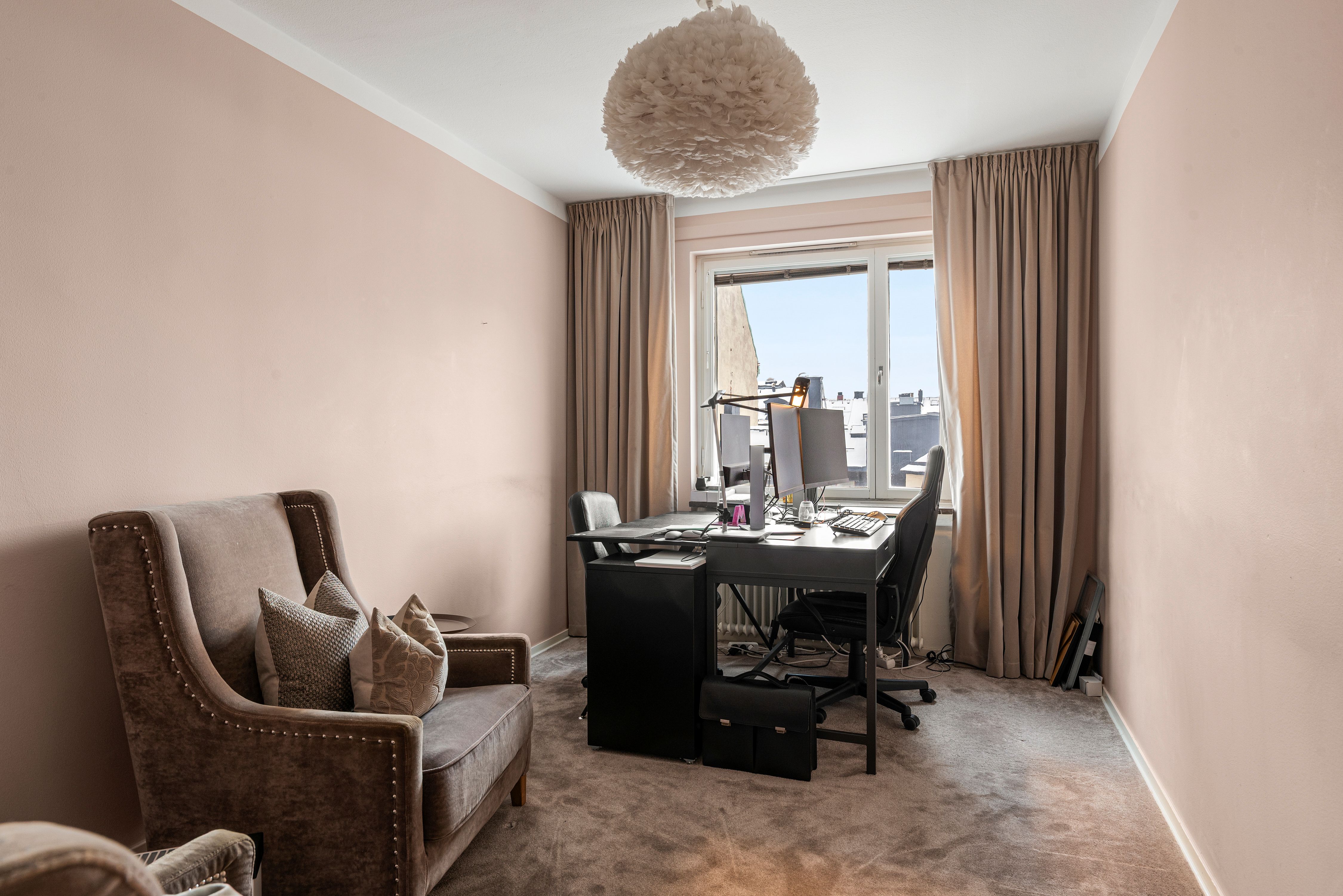 Kontor högst upp i huset med egen balkong på Östermalm