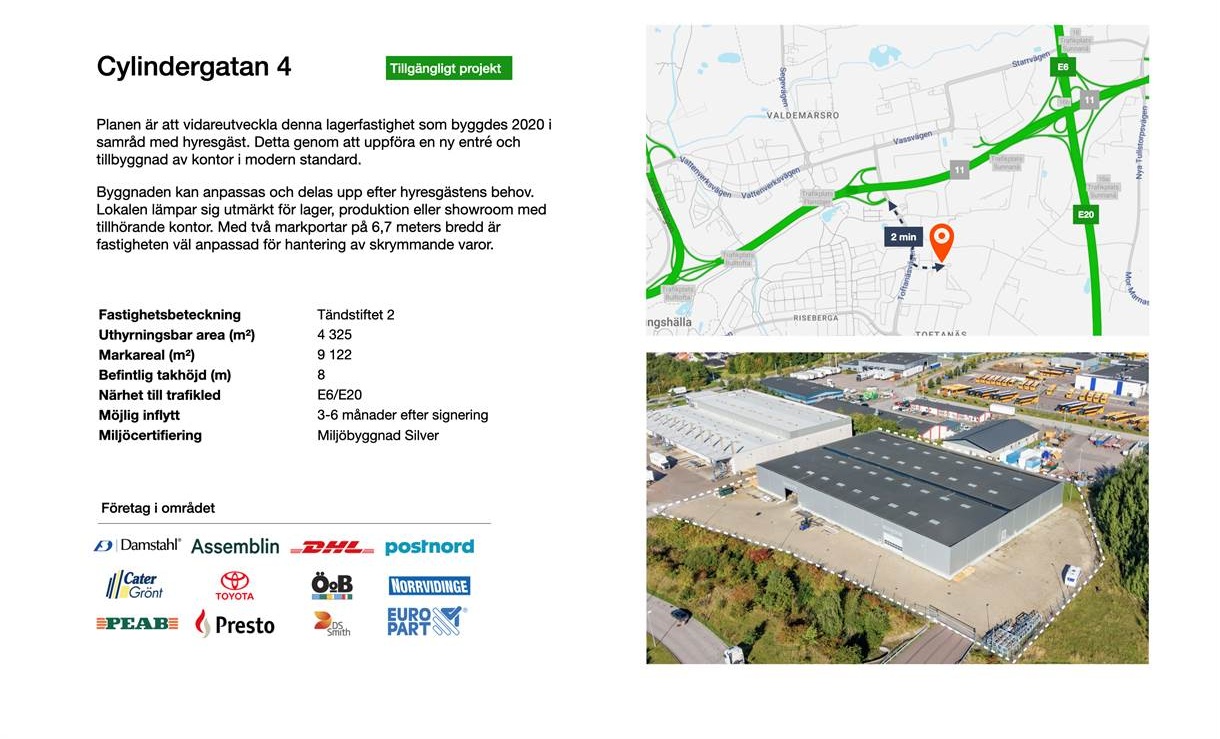 Området kännetecknas av starka och etablerade företag inom logistik, service och lätt industri, vilket gör Toftanäs till ett självklart val för den som vill kombinera effektivitet, synlighet och tillväxtmöjligheter.