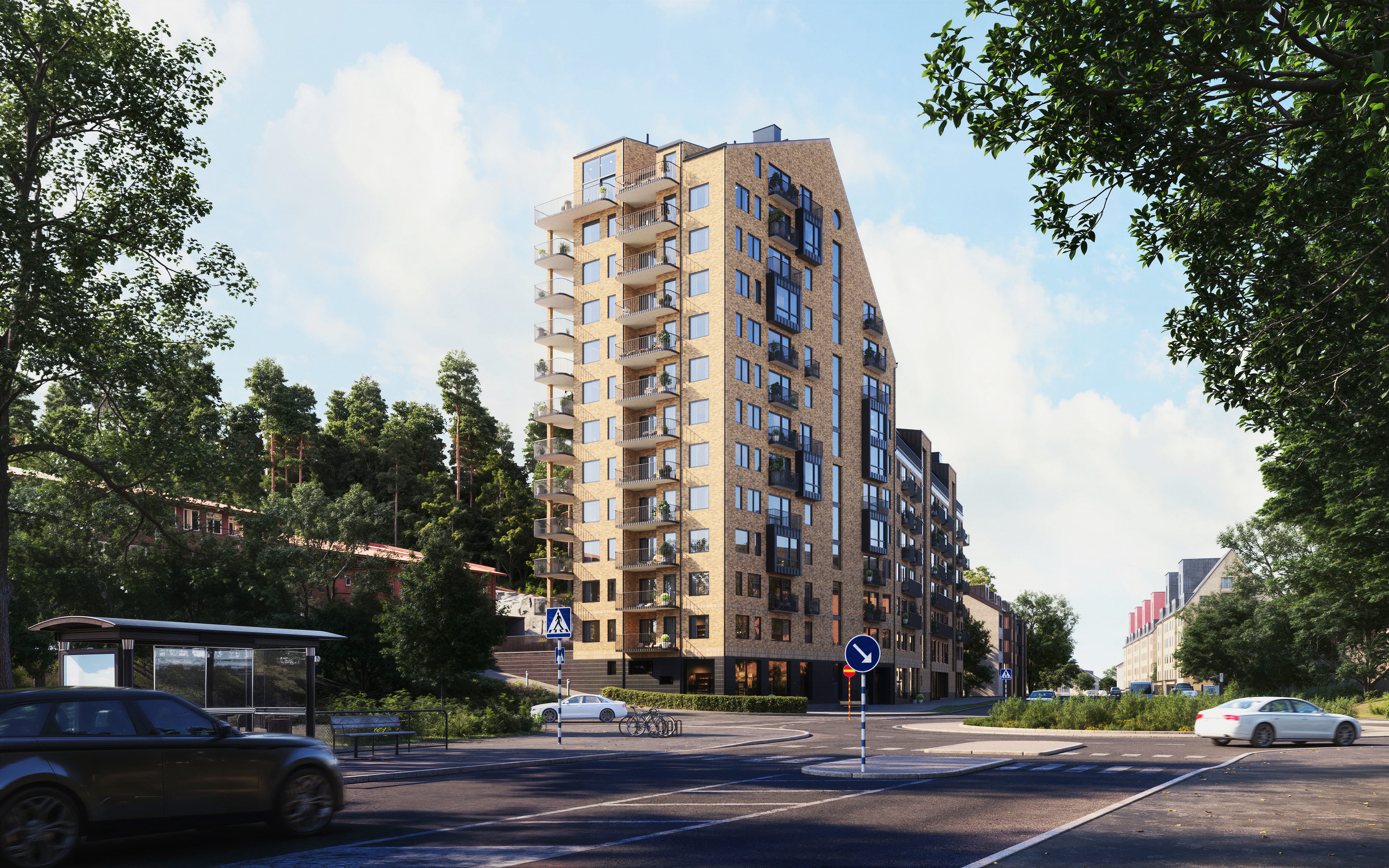 Området har god tillgång till kollektivtrafik med närliggande busshållplatser och spårvagnsförbindelser som snabbt tar dig till centrala Göteborg. I närheten finns ett brett utbud av service, såsom restauranger, caféer, butiker och träningsmöjligheter.