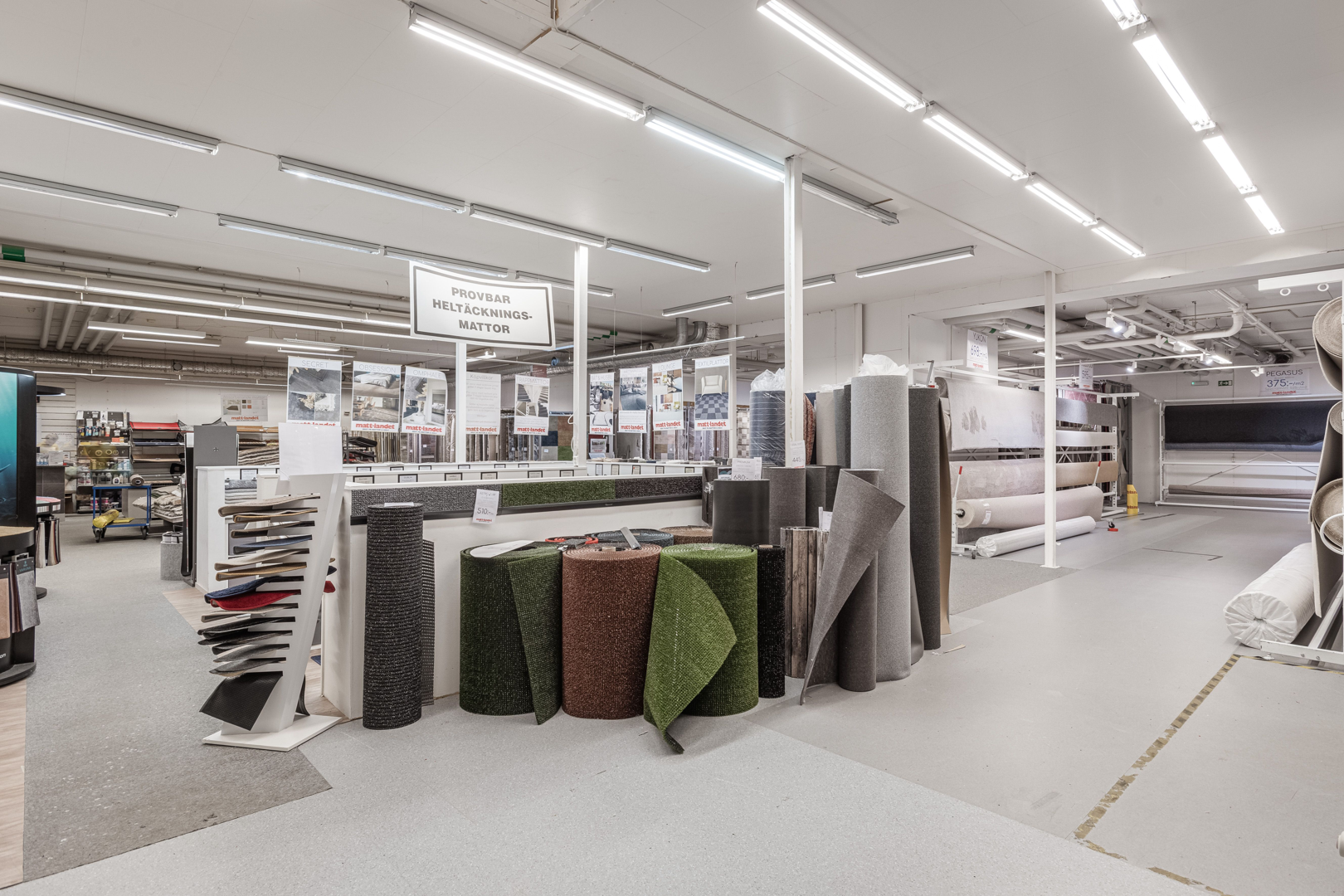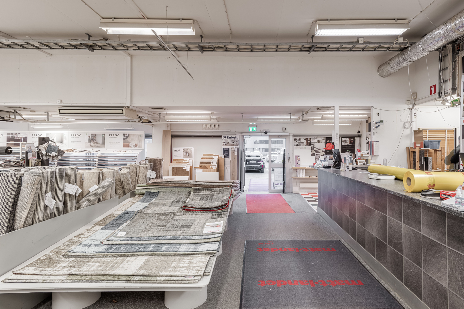 Generösa öppna ytor med högt i tak skapar goda förutsättningar för butik, showroom eller kombinerad butik- och lagerverksamhet.