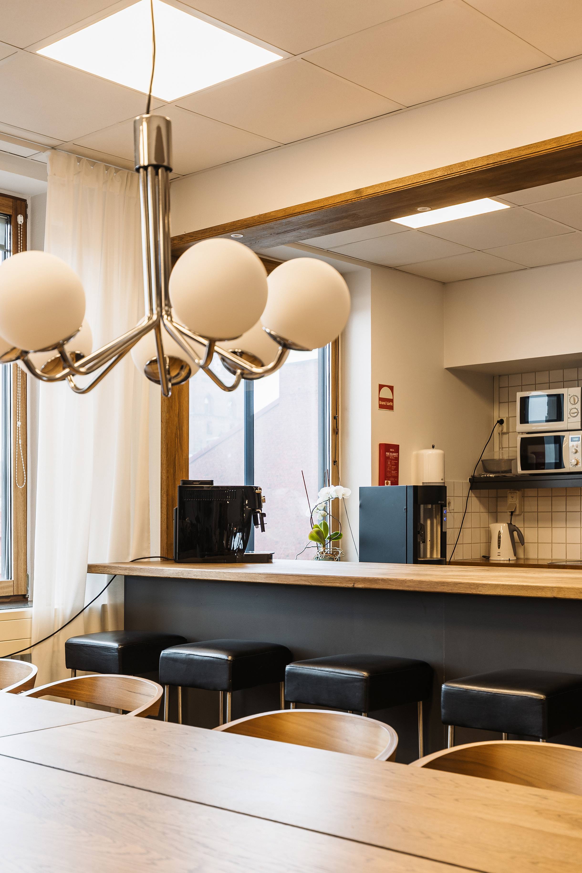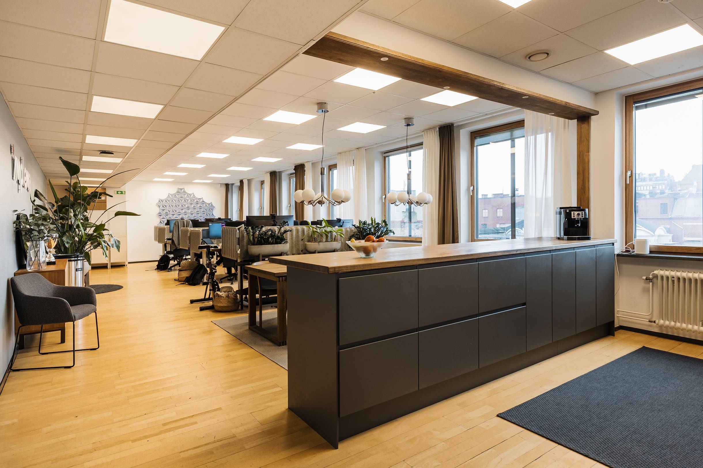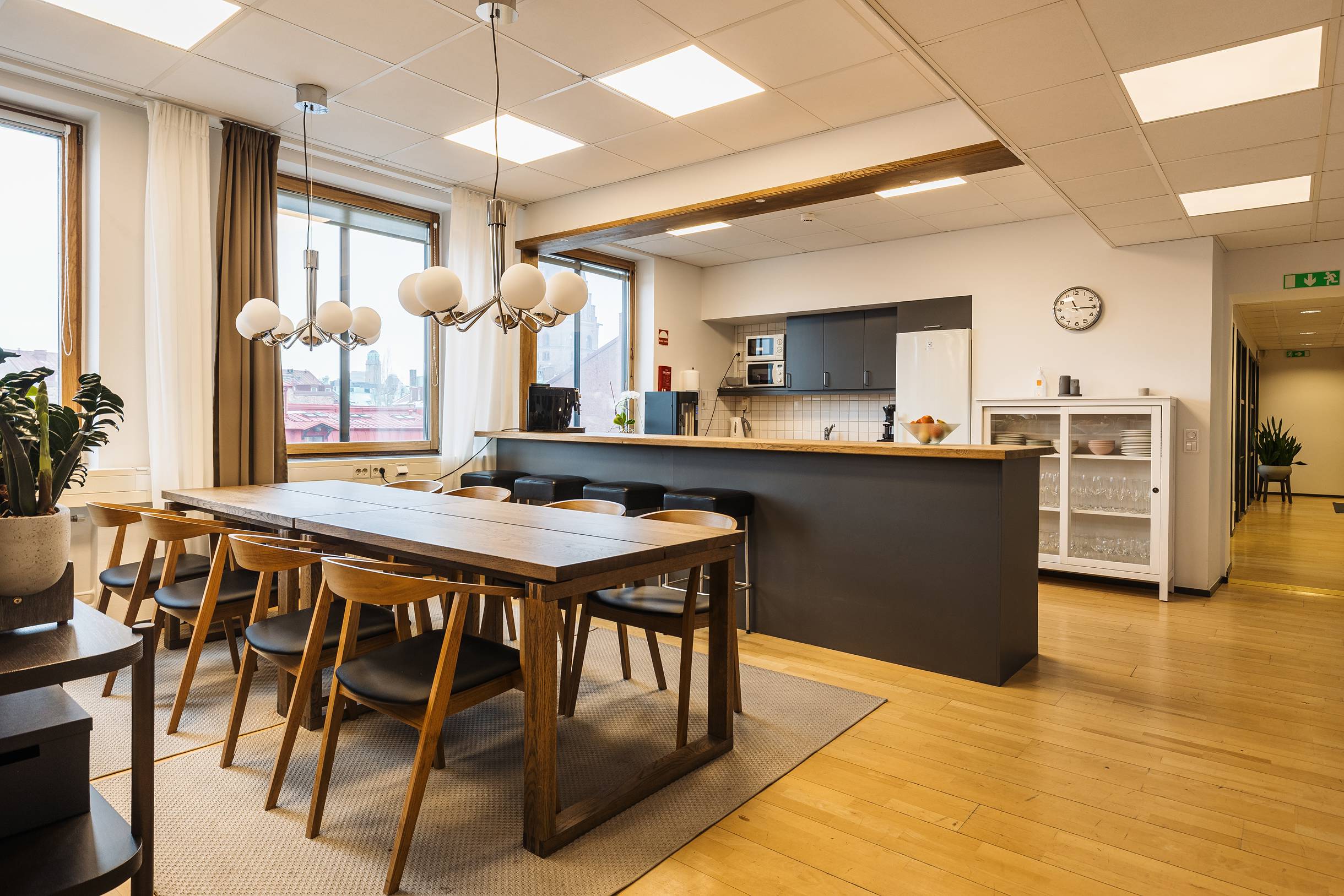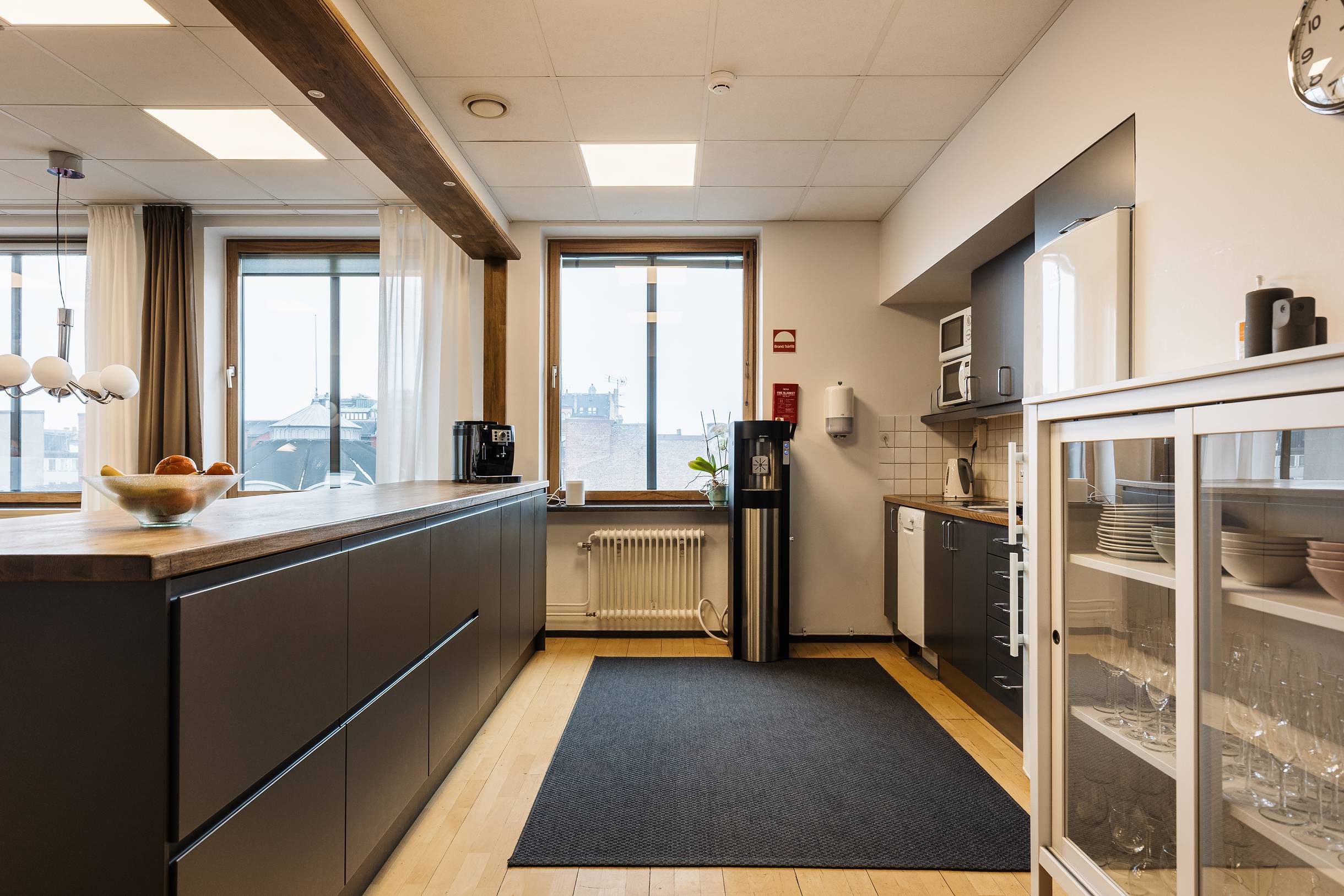 Lokalen har ett trevligt och funktionellt kök som blir en naturlig samlingspunkt för medarbetare. Generösa ljusinsläpp bidrar till en ljus och trivsam arbetsmiljö, och läget på en högre våning ger en fin utsikt samt en extra känsla av rymd och exklusivitet.