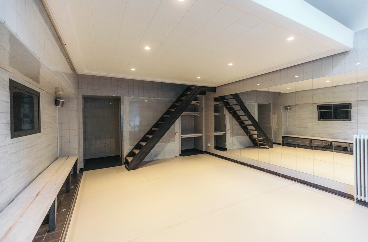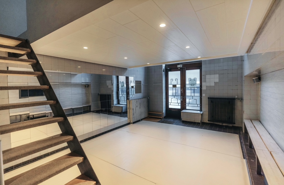 Lokalen har senast använts som dansstudio (speglar & dansmatta kan enkelt tas bort om man föredrar kakel både på väggar & golv) och tidigare som kontor & butik.
