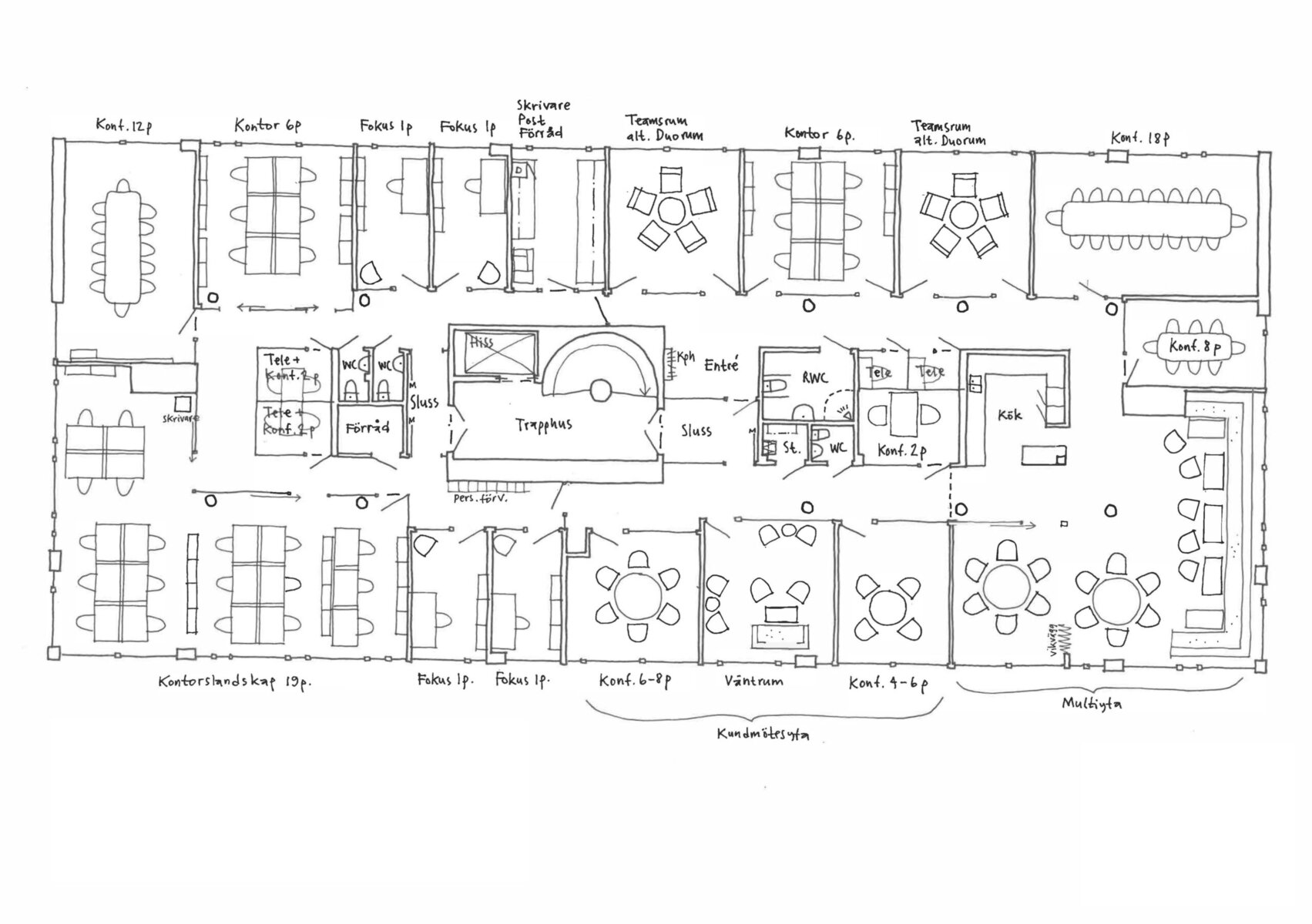 Lokalen passar perfekt för kontorsverksamhet, som behandlingslokal eller klinik, och har en smart planlösning med flera kontorsrum och stort konferensrum. Möjlighet till skräddarsydda anpassningar för din verksamhet finns. Byggnaden är tillgänglighetsanpassad med hiss och RWC.