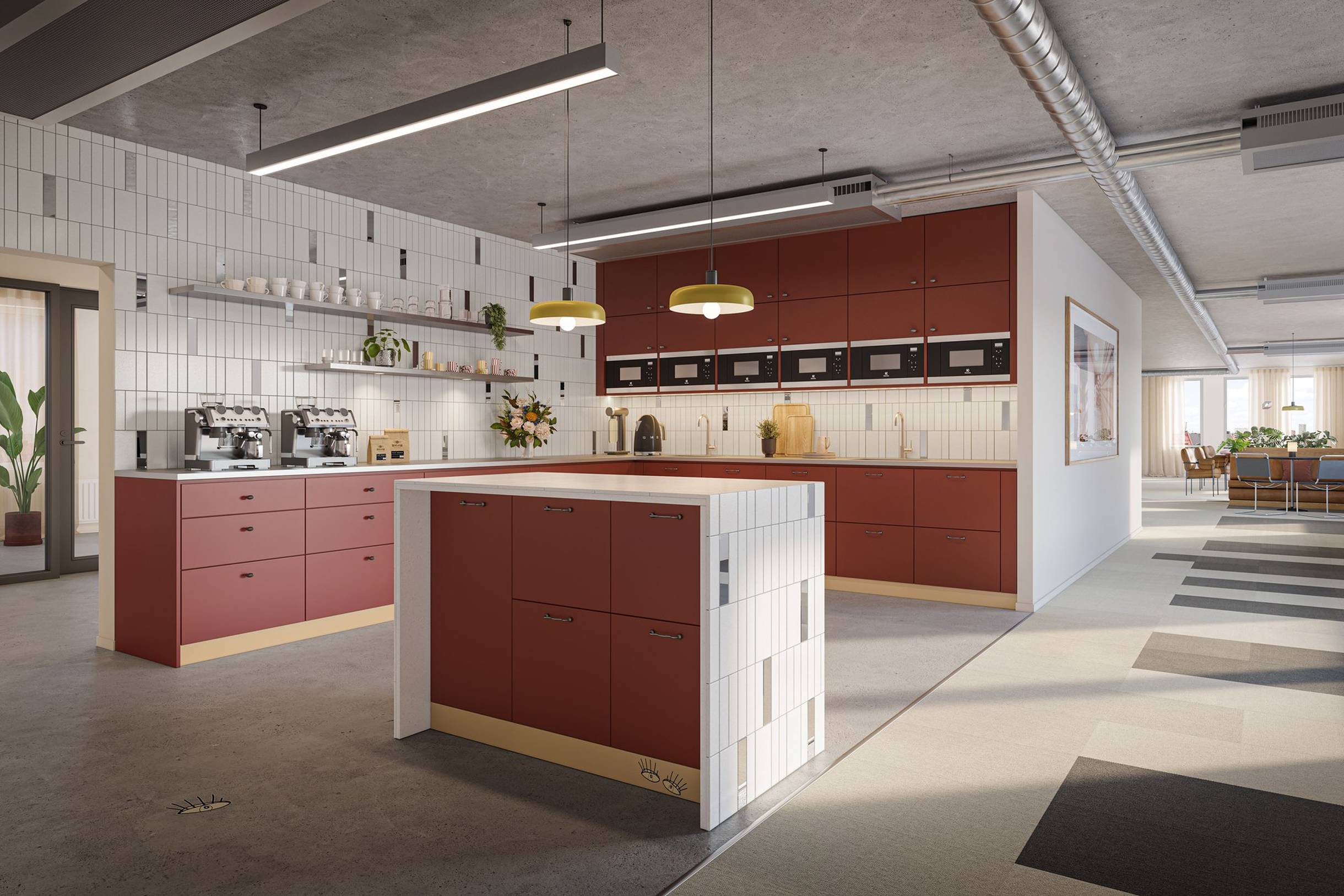 Välplanerad lokal där ingenting har lämnats åt slumpen. Öppna arbetsytor blandas med mötesrum i varierande storlekar, teamsrum och sociala ytor. Egen bar i fantastisk mingelyta med utsikt över Stockholms takåsar.