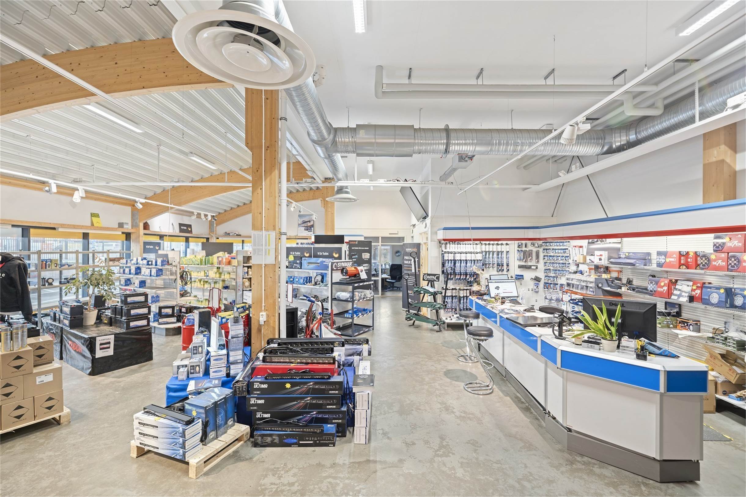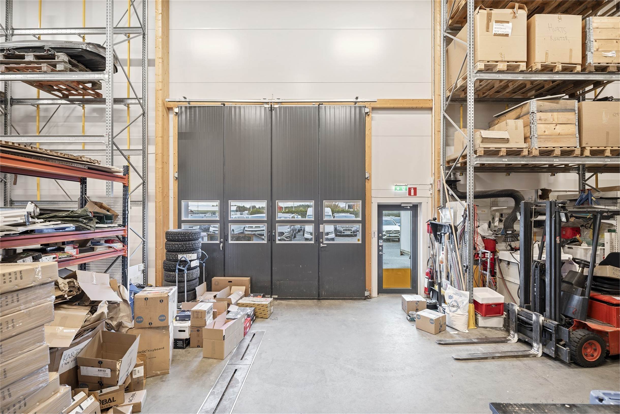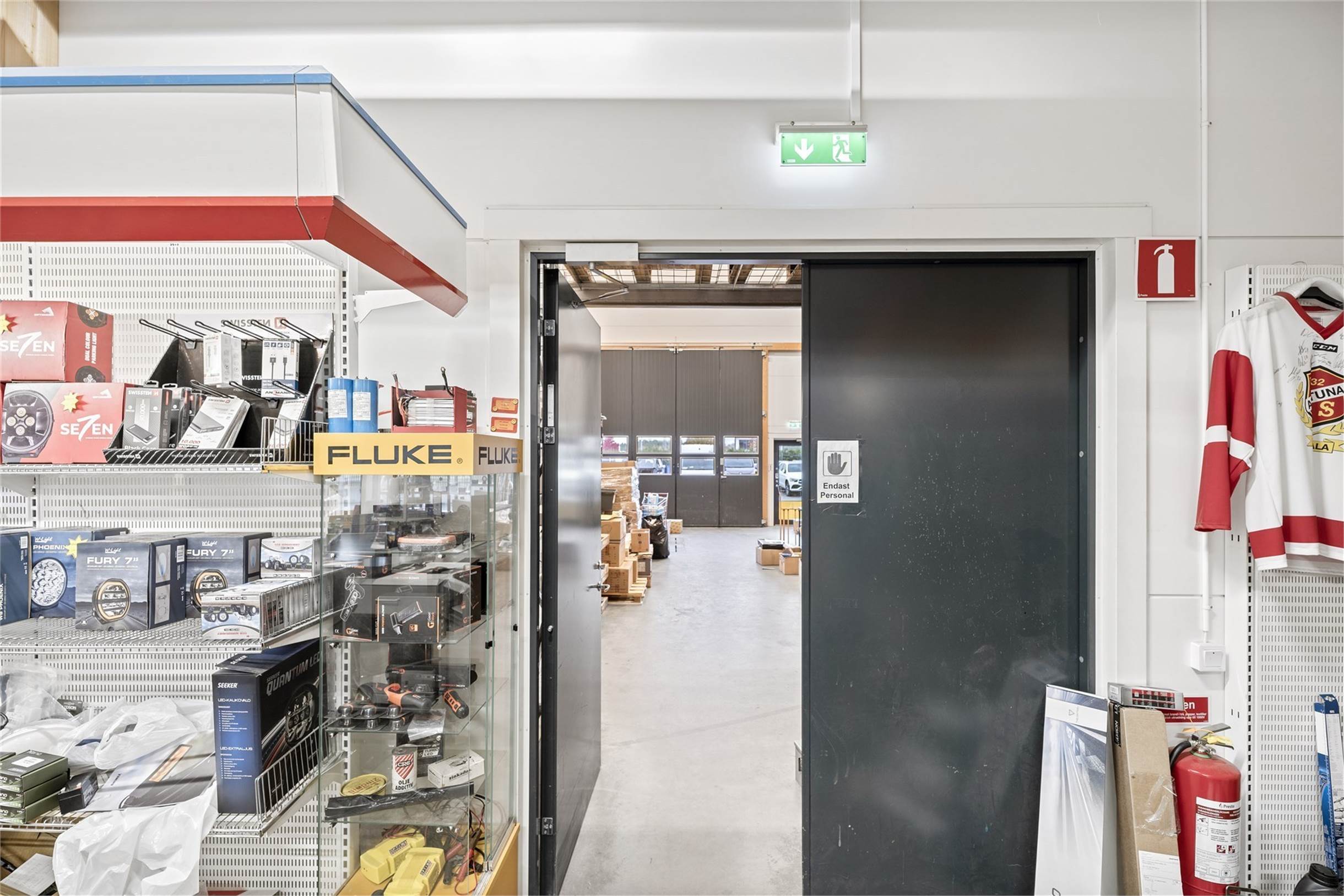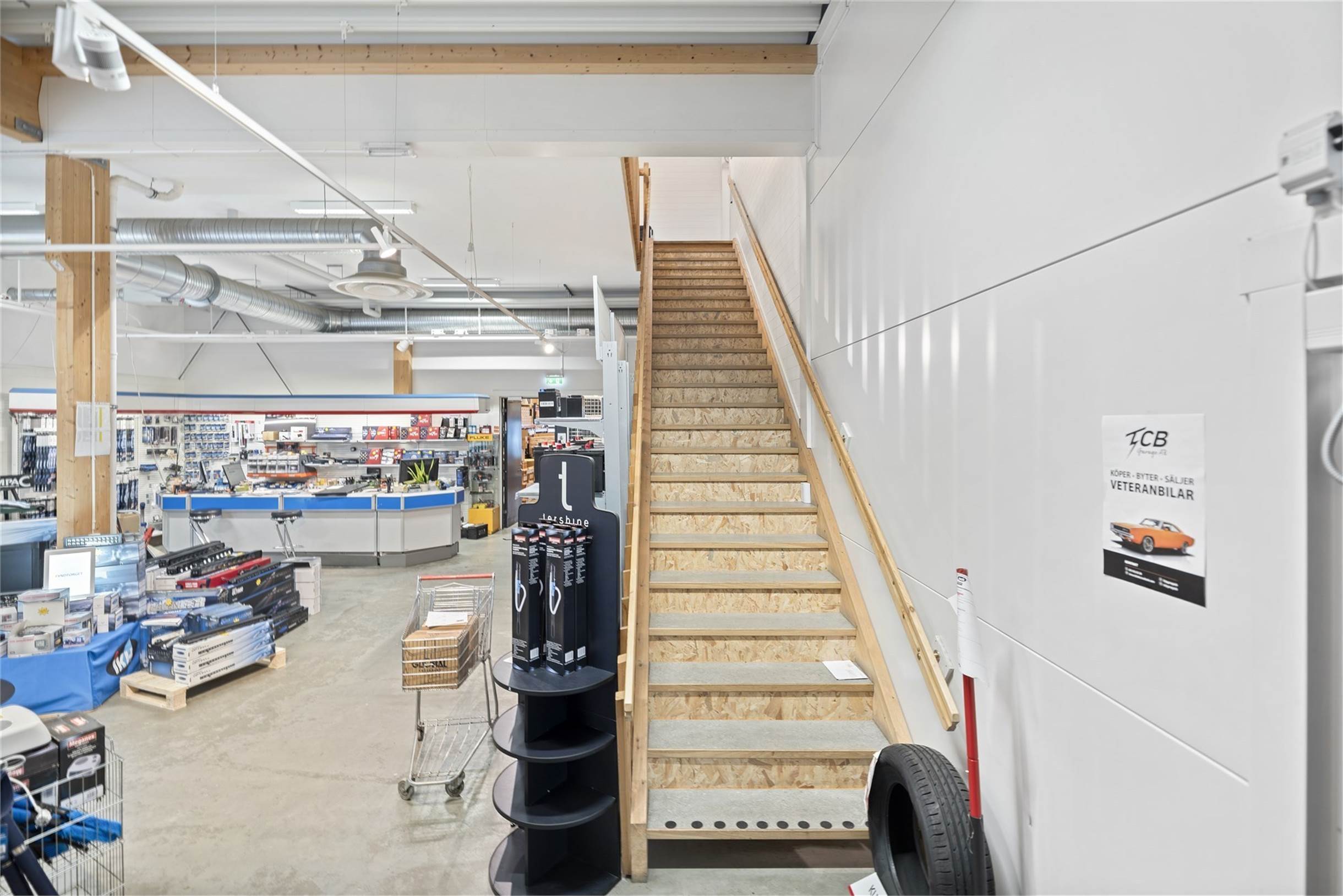 När du kliver in i lokalen möts du av den öppna butiksytan, här erbjuds även separata kontorsrum. Vidare in i lokalen finner du höglagret med generös takhöjd och två väl tilltagna portar, det finns även ett separat omklädningsrum. Höglagret erbjuder genom körning tack vare att det finns två portar.  Denna lokal är utmärkt för den som söker butik, lager och kontor med Librobäcks bästa läge.