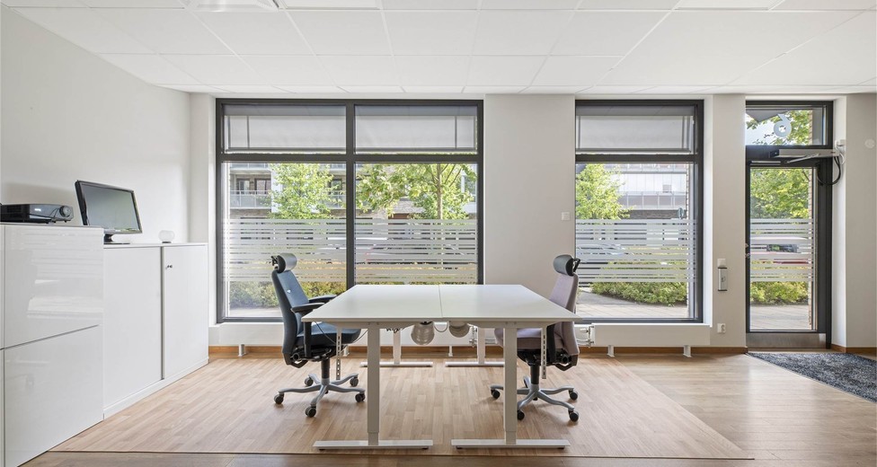 Lokalen har öppen planlösning med generöst ljusinsläpp, fräscha ytskikt och en inbjudande entré mot gatan – vilket ger ett professionellt intryck för både kunder och medarbetare.