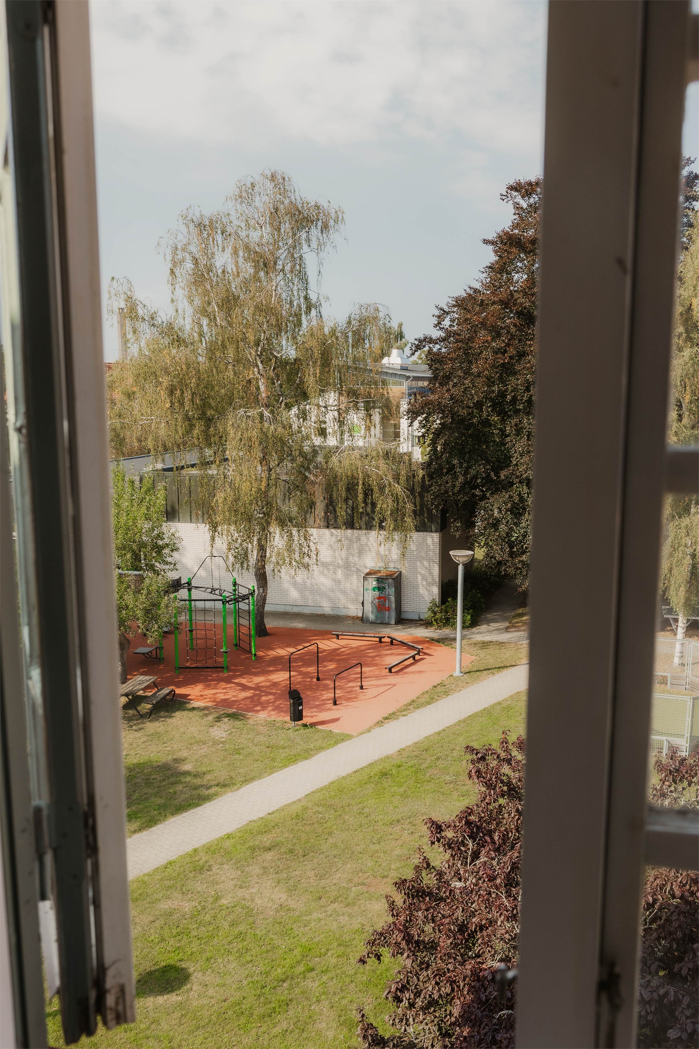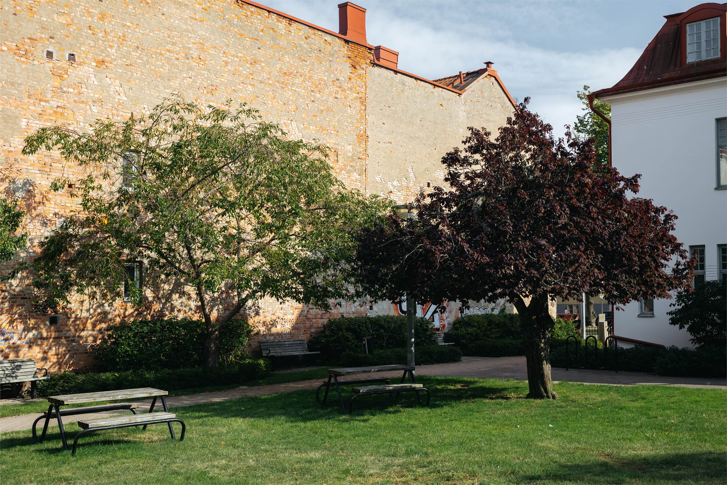 Fastgheten har ett attraktivt läge i centrala Kalmar med god tillgång till både grönska och stadens serviceutbud. Utanför byggnaden finns en mysig innergård med sittplatser – perfekt för lunch- och fikapauser i det fria.