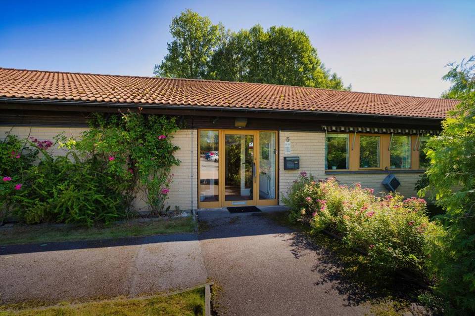 Byggnaden har en villa liknande trädgård och stor uteplats för medarbetare att nyttja. På fastigheten finns carport för 6 bilar samt p-plats för ca 10 bilar.