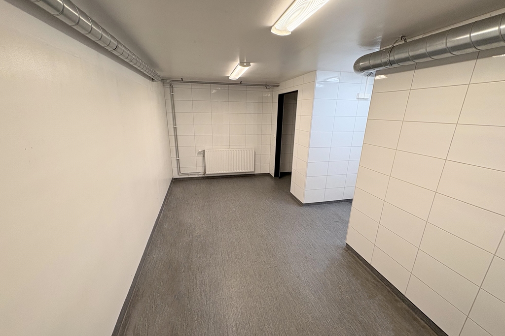 Lokalen består dels av en stor lageryta som ligger i markplan, och där de stora lastportarna möjliggör smidig logistik. Här finns gott om plats för förvaring av gods och ställage kan med fördel installeras för att effektivt ta till vara den väl tilltagna takhöjden.