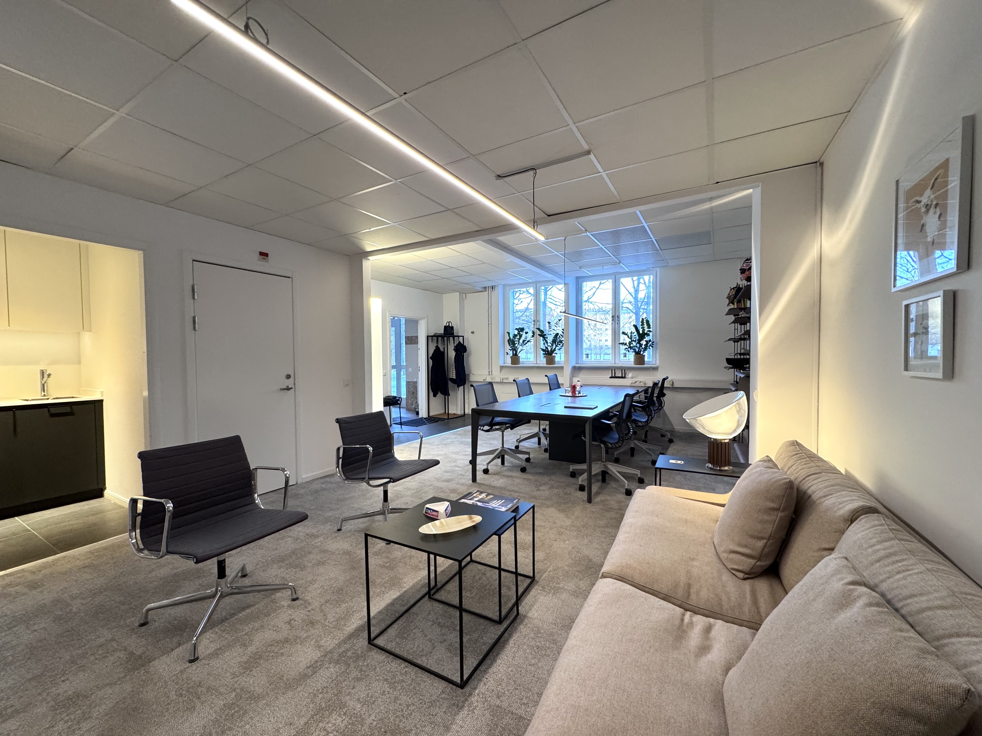 Planlösningen erbjuder en kombination av öppna ytor, mötesrum, arbetsplatser samt pentry och WC, vilket gör lokalen mycket mångsidig och lämplig för exempelvis kontor, studio, mottagning eller showroom.