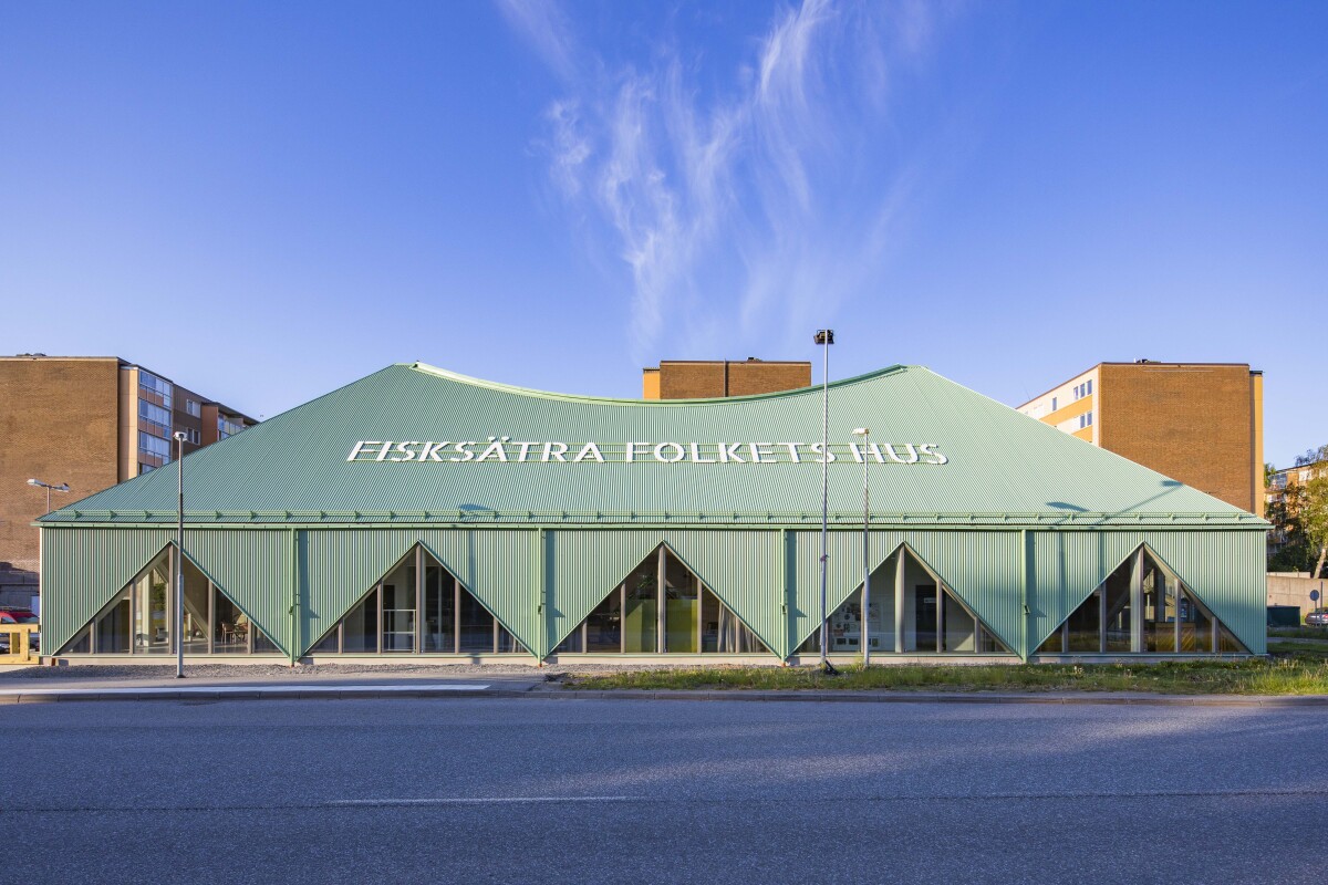 Byggnaden är det första man möter när man kommer in till Fisksätra Centrum. Tanken med gestaltningen växte fram då den är ritad som tillfällig byggnad med tillfälligt bygglov.
