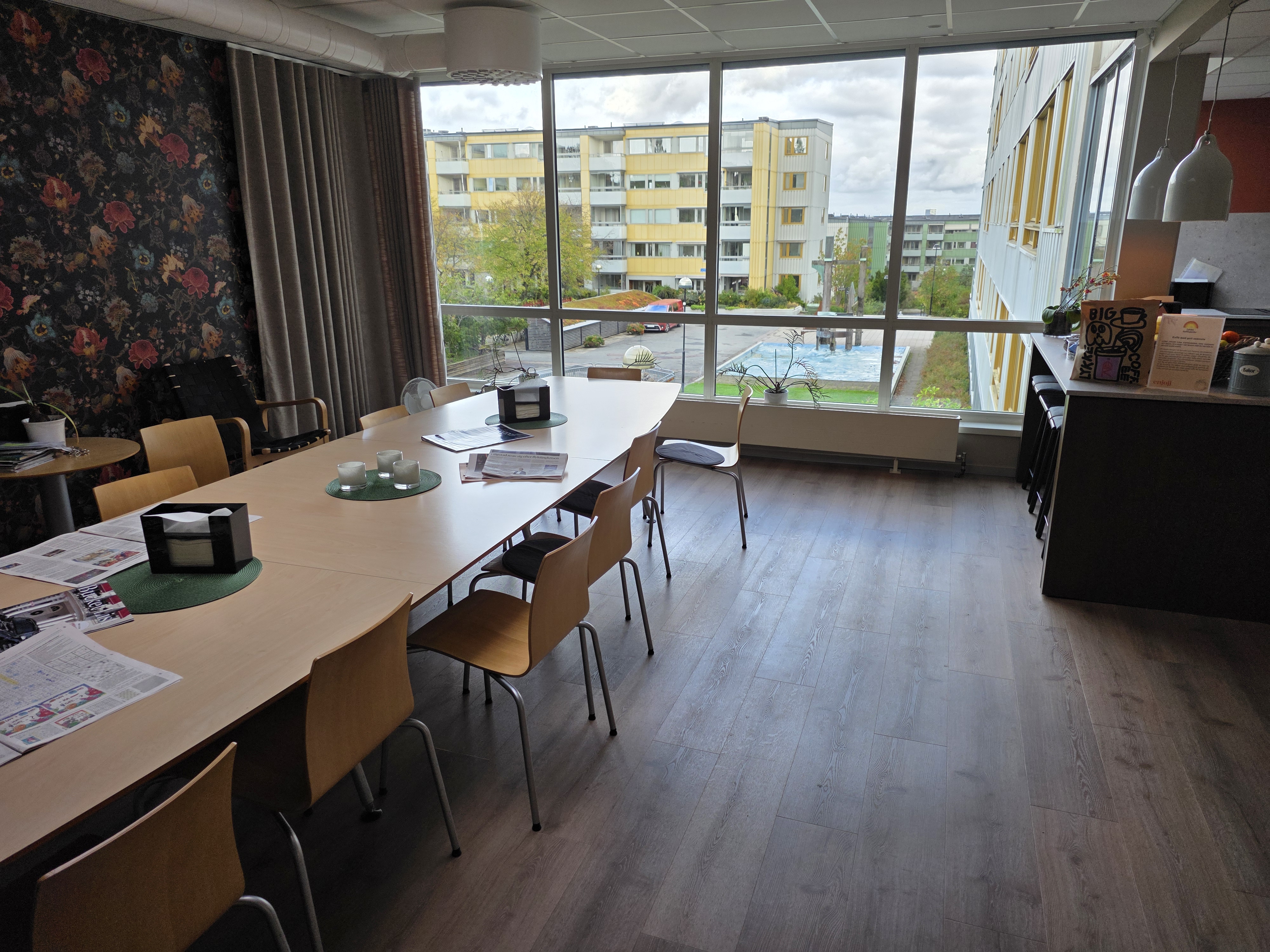 Området mycket säkert, fin utsikt över innan-gård/park från lunchrummet (stort).