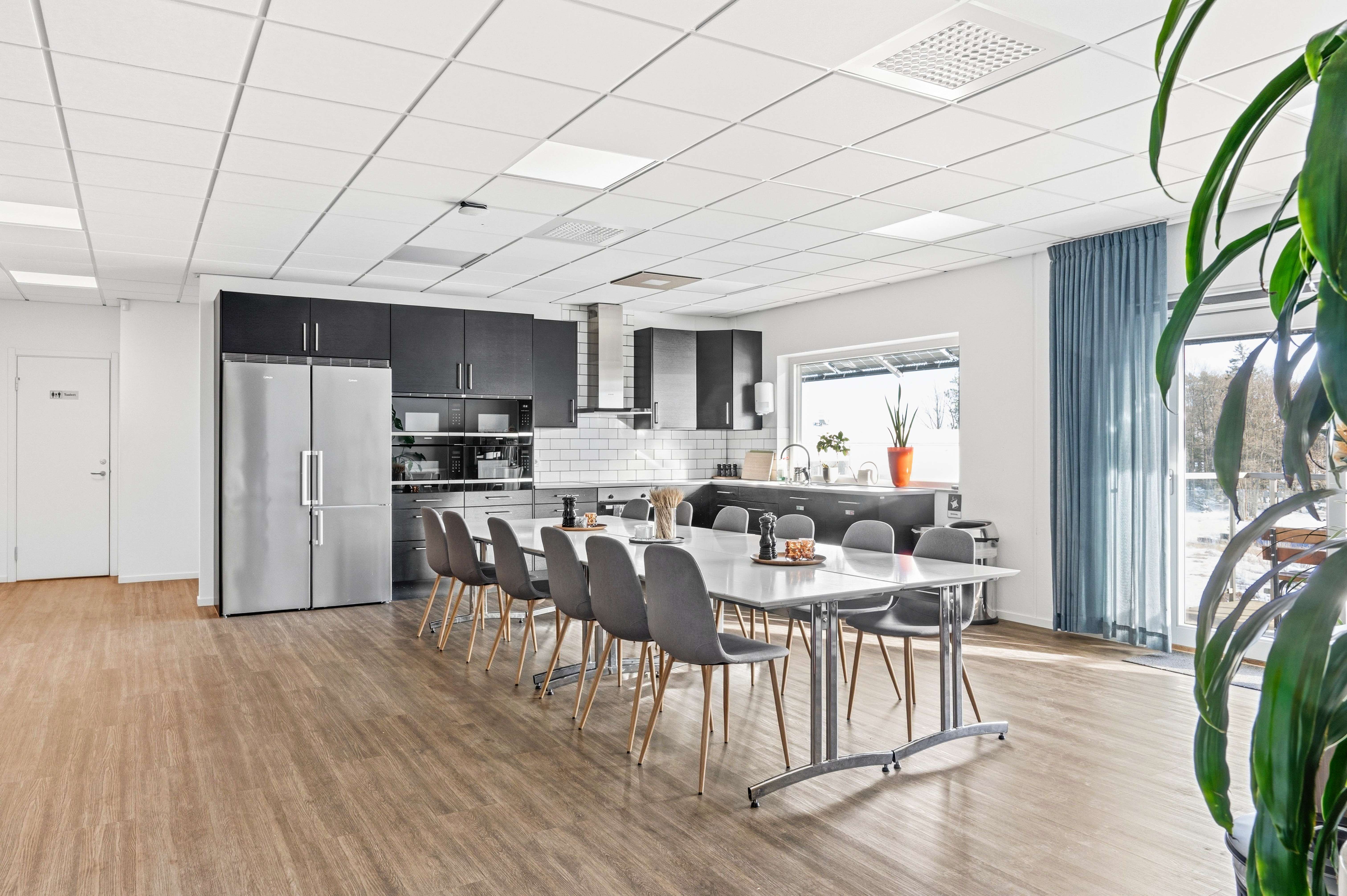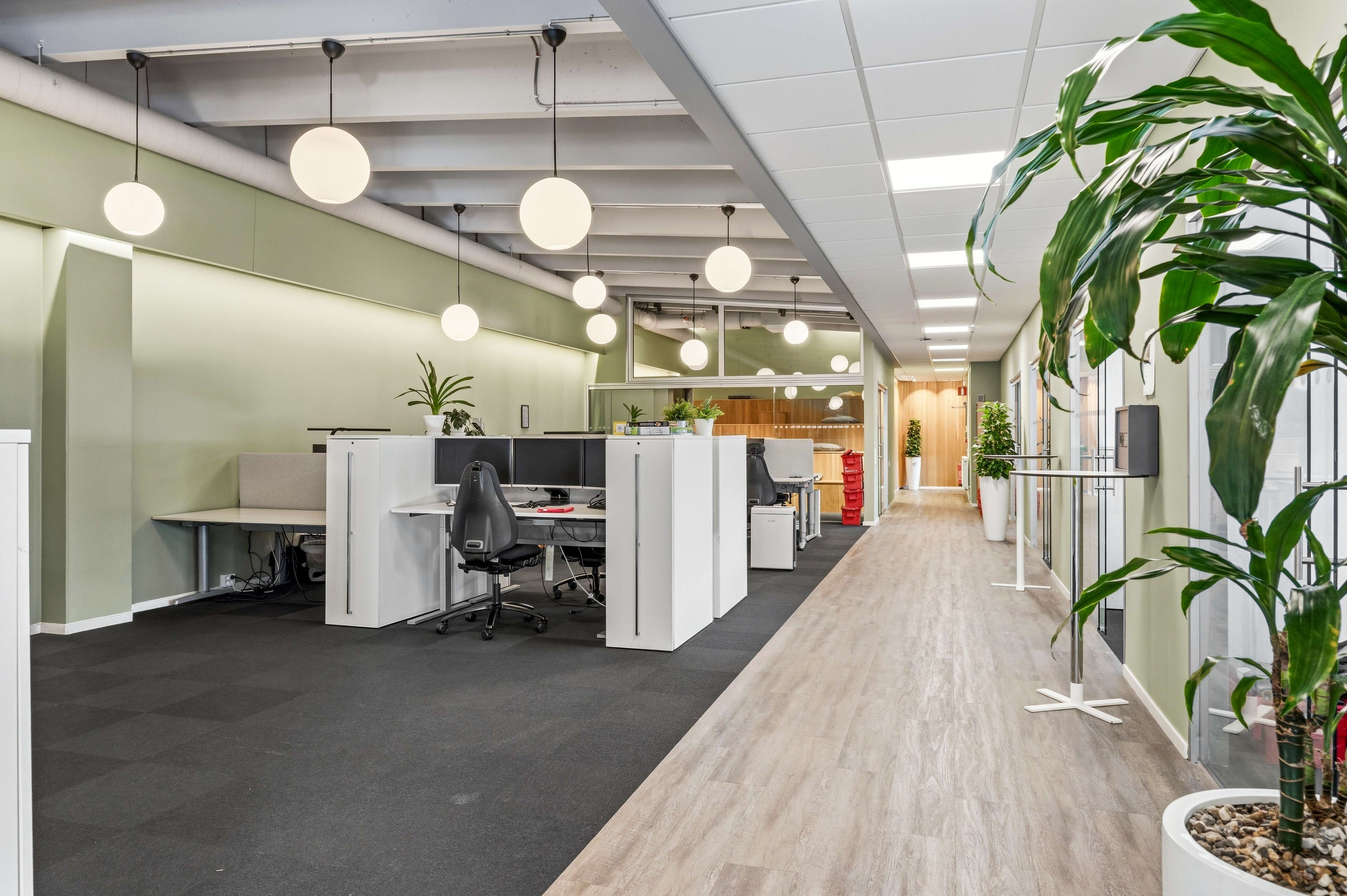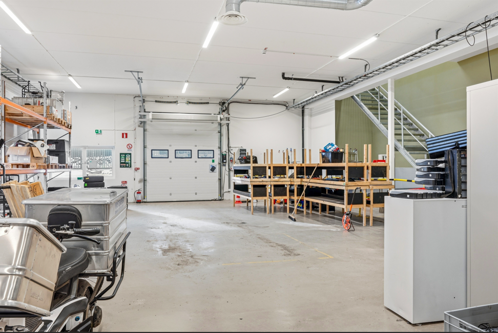 Den totala kontorsytan uppgår till cirka 876 kvm och är i mycket gott skick med en blandad planlösning. Kontorsytorna är strategiskt placerade på tre olika delar av fastigheten och är direkt kopplade till varsin lagerdel, vilket skapar en effektiv och flexibel struktur. Denna utformning gör fastigheten särskilt lämpad för uppdelning i flera enheter och underlättar drift för olika verksamheter parallellt.