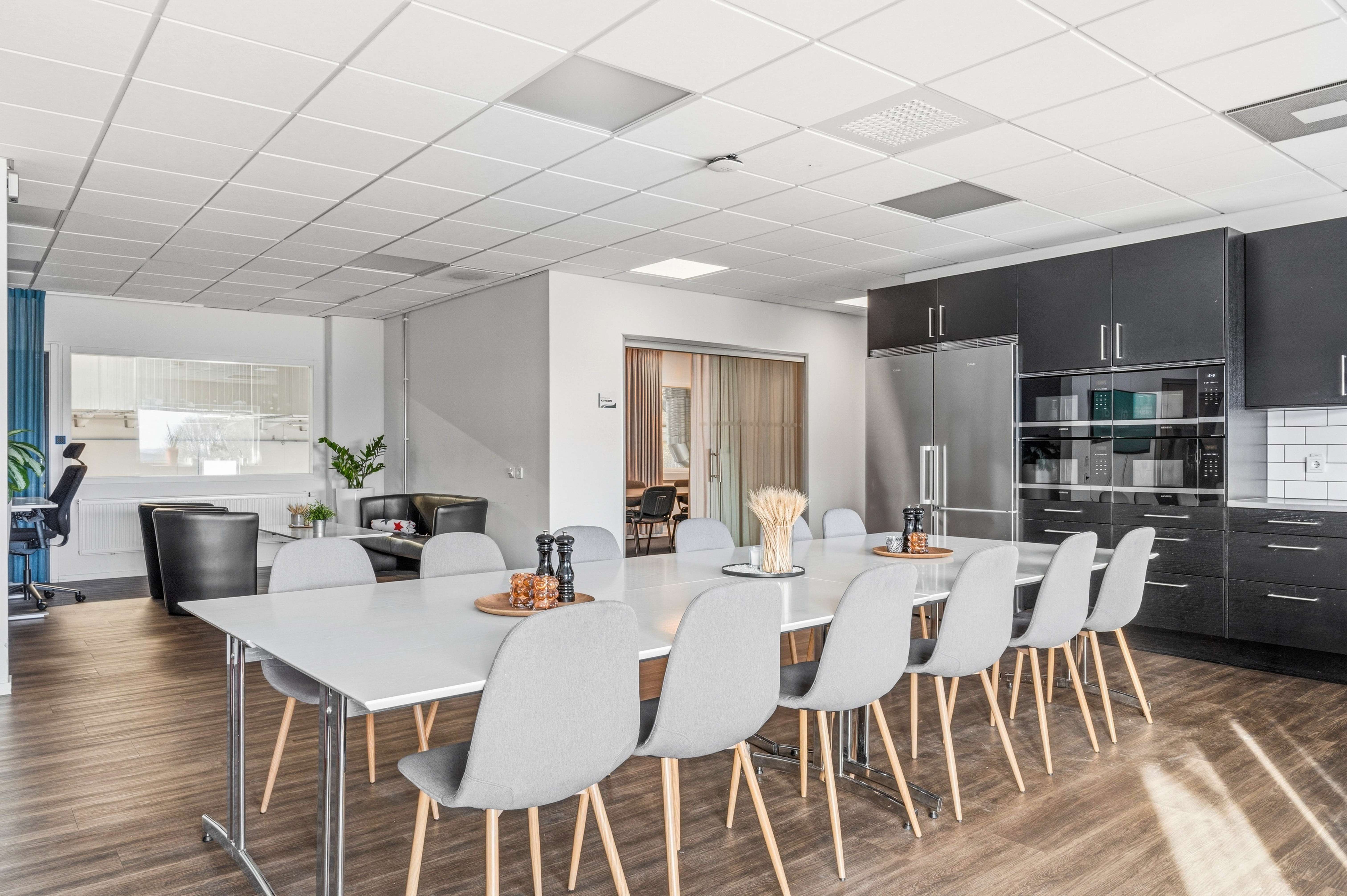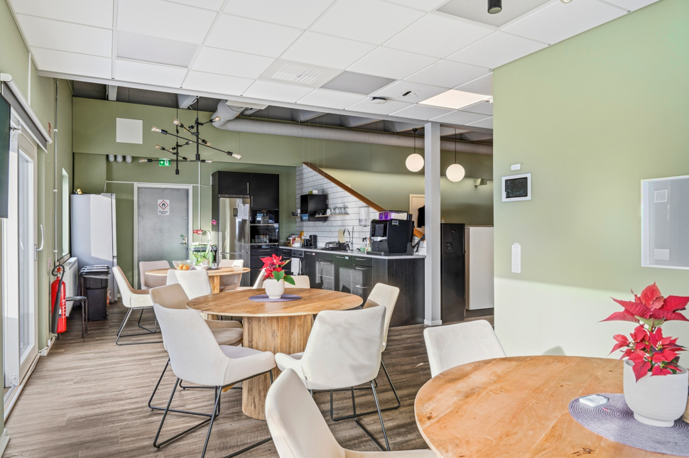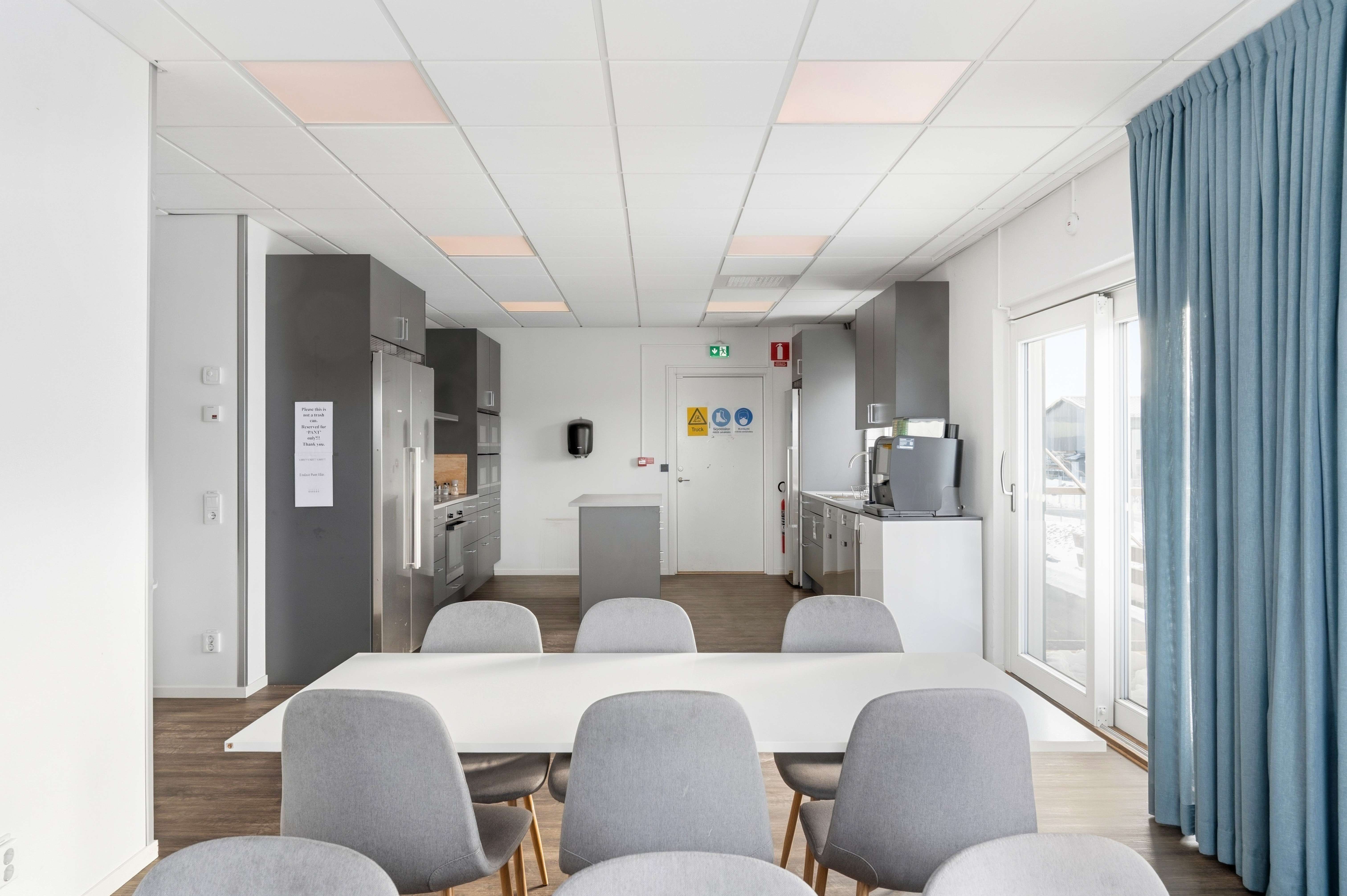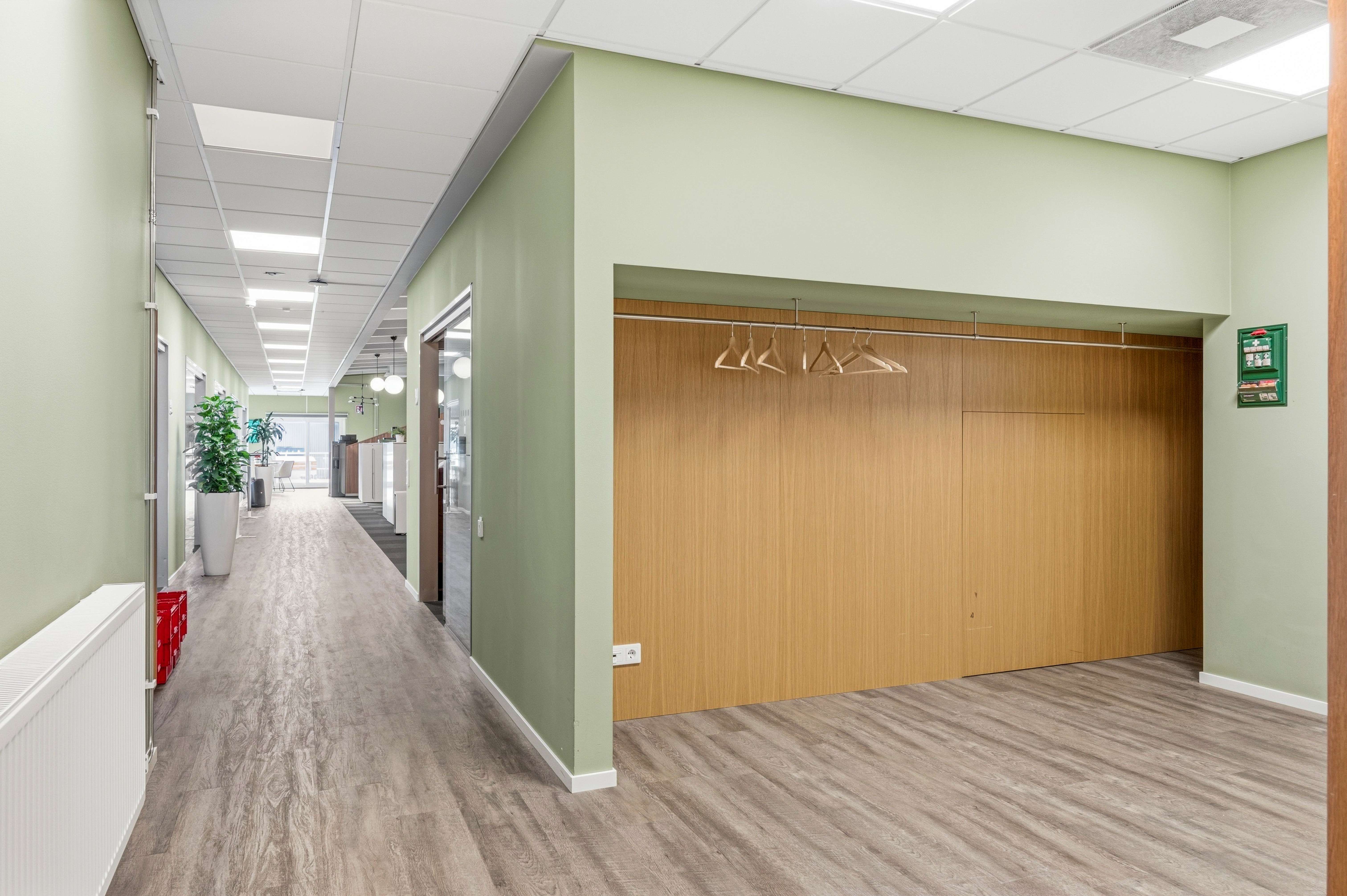 Den totala kontorsytan uppgår till cirka 876 kvm och är i mycket gott skick med en blandad planlösning. Kontorsytorna är strategiskt placerade på tre olika delar av fastigheten och är direkt kopplade till varsin lagerdel, vilket skapar en effektiv och flexibel struktur. Denna utformning gör fastigheten särskilt lämpad för uppdelning i flera enheter och underlättar drift för olika verksamheter parallellt.