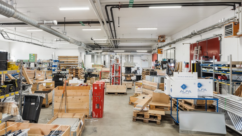 Utöver kontorsdelen finns en praktisk lagerdel om 573kvm med flera markportar som underlättar in- och utleveranser. I anslutning finns omklädningsrum, vilket gör lokalen särskilt lämpad för verksamheter med kombinerat kontor och lager.