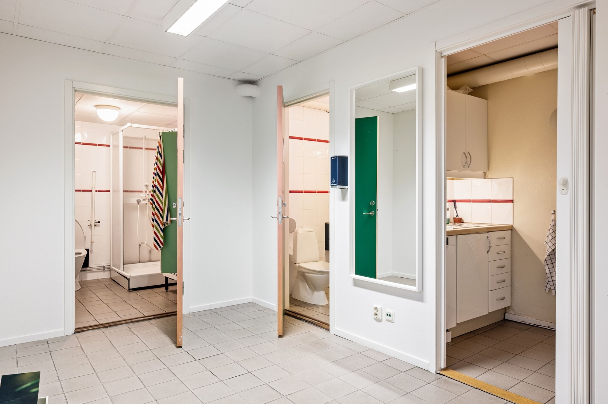 Välkommen till en smart planerad lokal som kombinerar kontor och lager i ett effektivt flöde. Här finns flera kontorsrum, mötesrum, pentry, pausrum samt omklädning, dusch och WC. Lagerytan har egen lastport för enkel in- och utlastning samt en del med extra högt i tak, perfekt för verksamheter som behöver volym eller vill bygga på höjden. En flexibel lokal som ger goda möjligheter att anpassa ytorna efter din verksamhets behov.