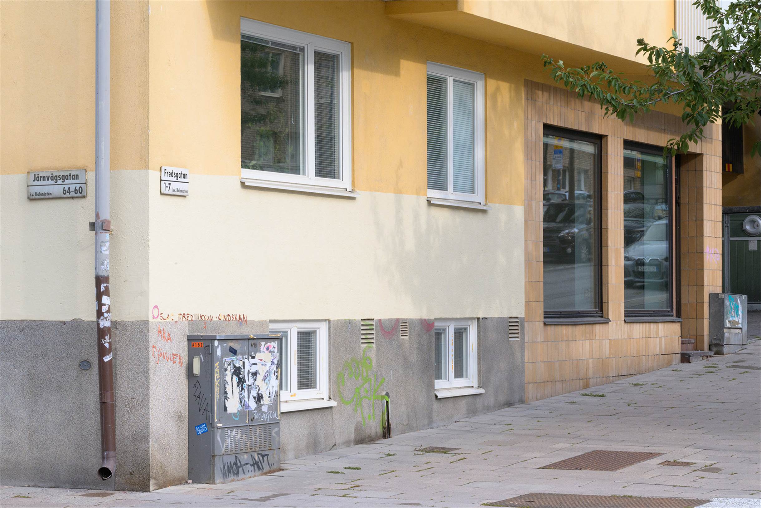 Lokalen har stora fönster i ett synligt hörnläge med god exponering mot både Järnvägsgatan och Fredsgatan.