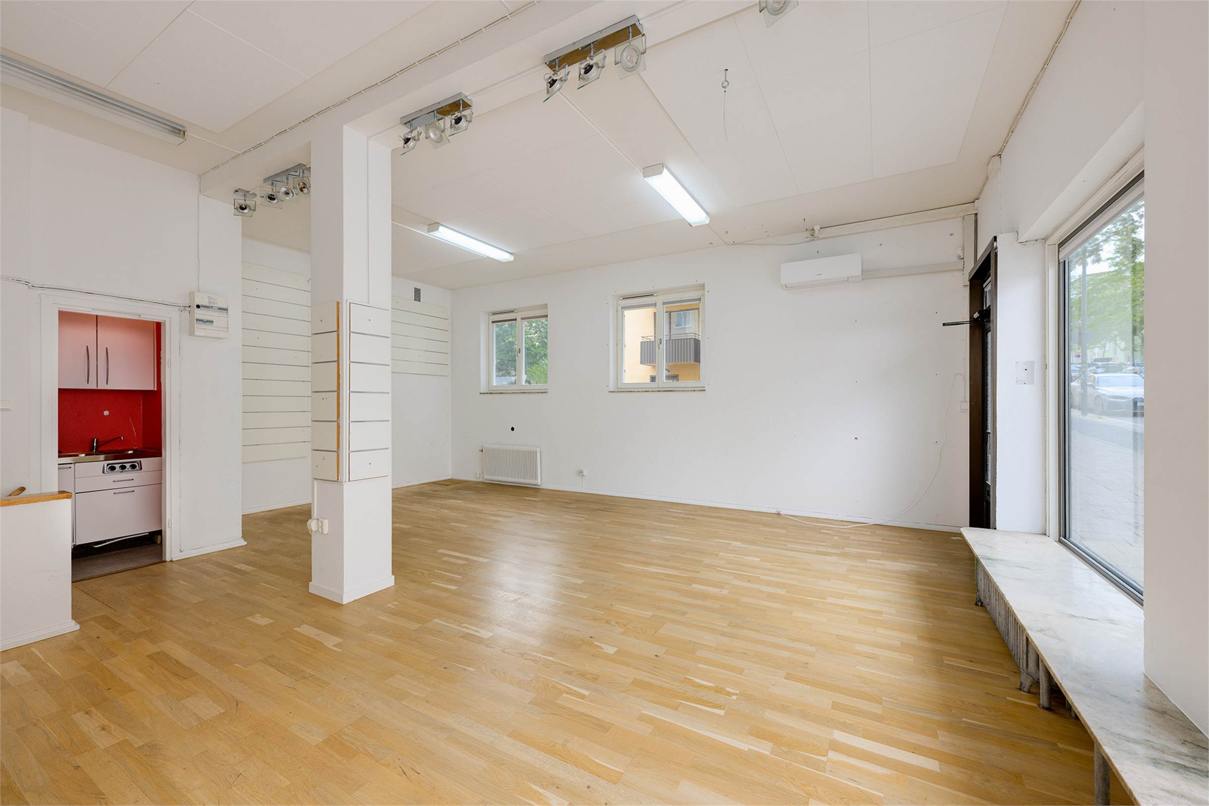 Lagret är rymligt och lättillgängligt med flera rum, WC samt bra förvaringsmöjligheter, vilket gör lokalen lämplig för såväl butik som showroom eller kombinerad försäljnings- och lagerverksamhet.
