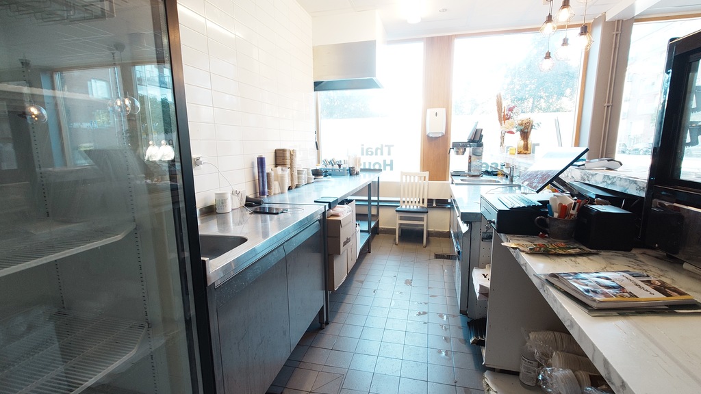 Lokalen har ett öppet kök med fullgod ventilation (imkanal) och är välplanerad för effektiv drift. Den ljusa hörnplaceringen med stora fönsterpartier skapar en inbjudande atmosfär både för gäster och förbipasserande.