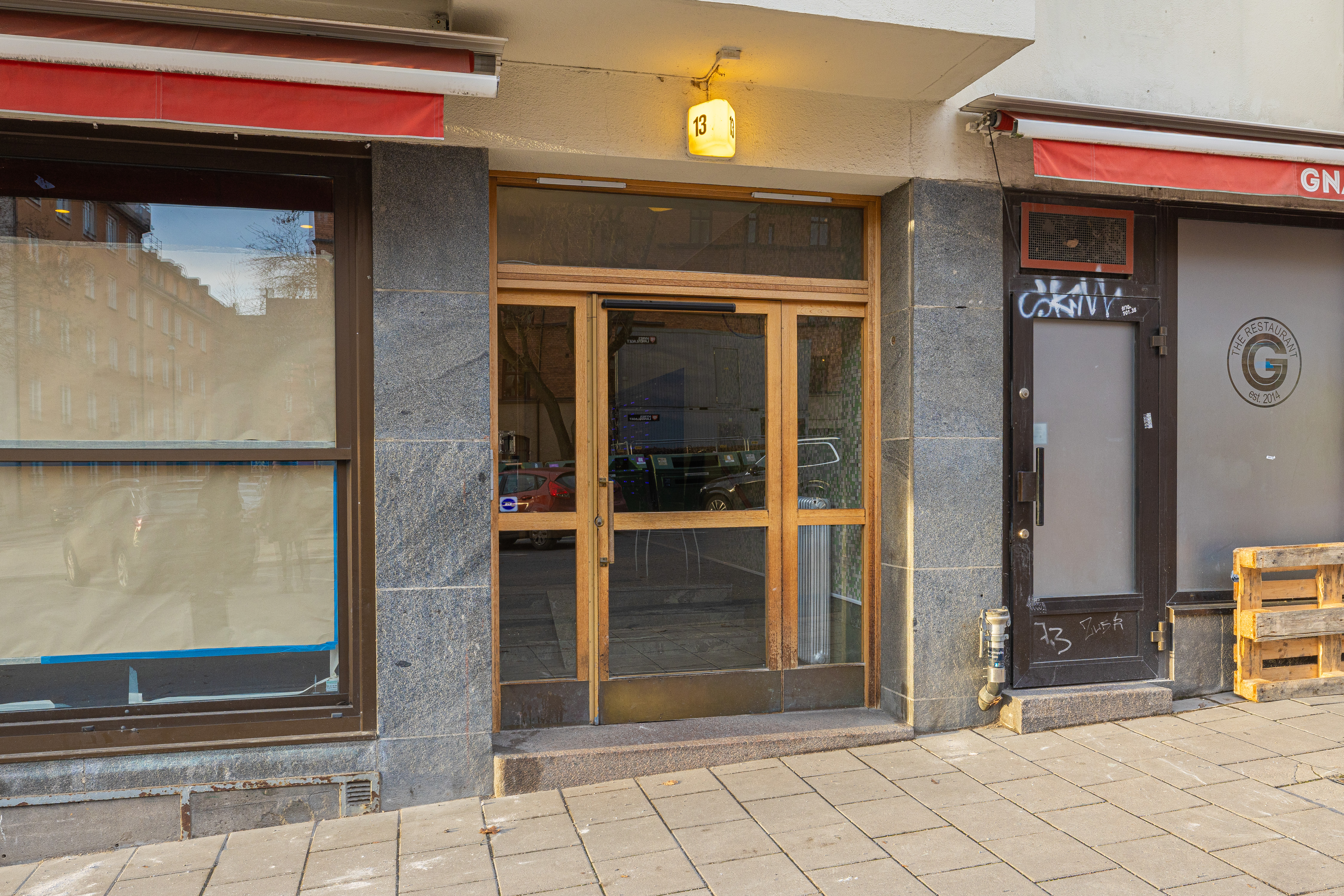 Lokalen ligger i ett lugnt område med ändå centralt läge och närhet till stadens puls. I närområdet finns gott om restauranger, handel och närliggande parker.