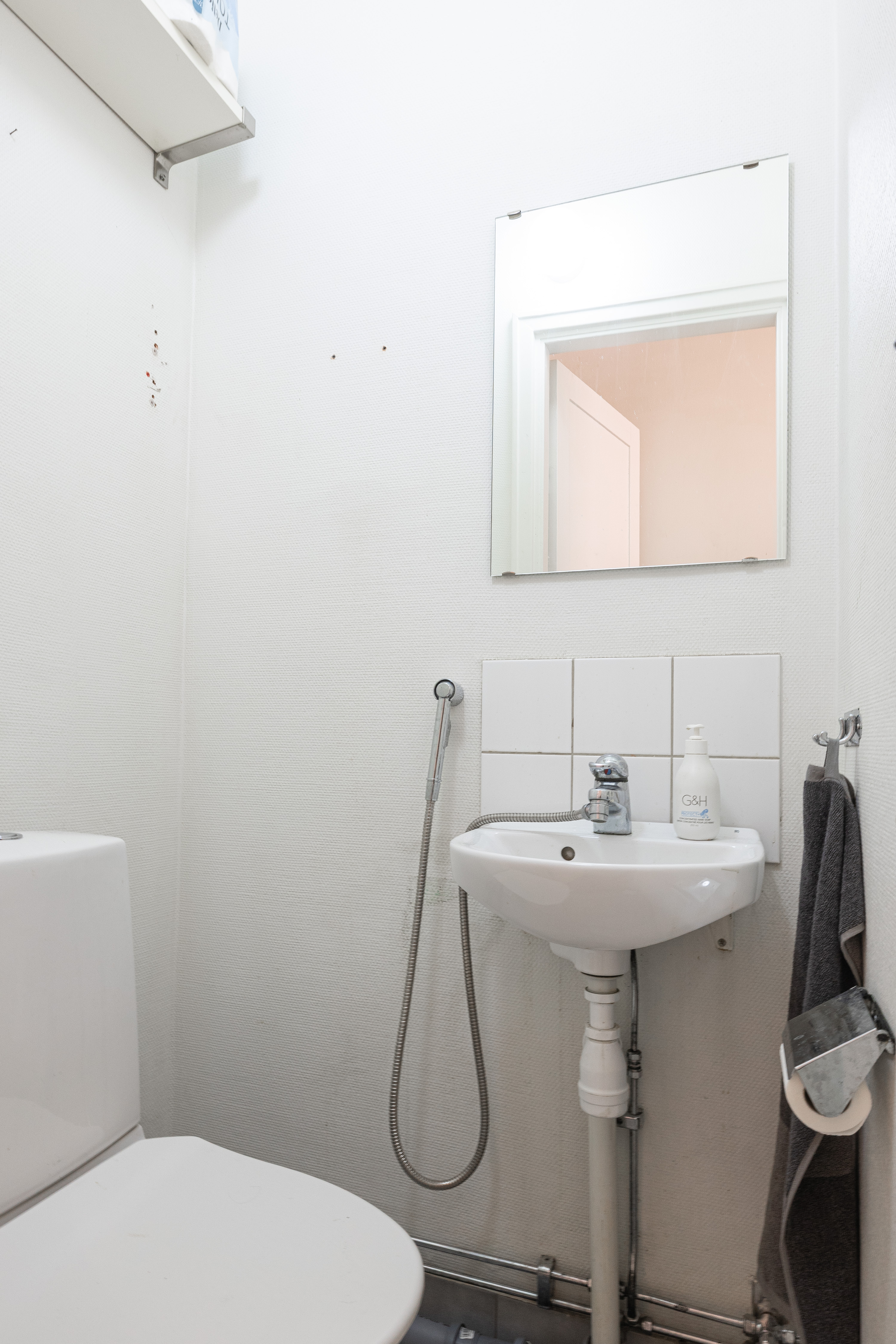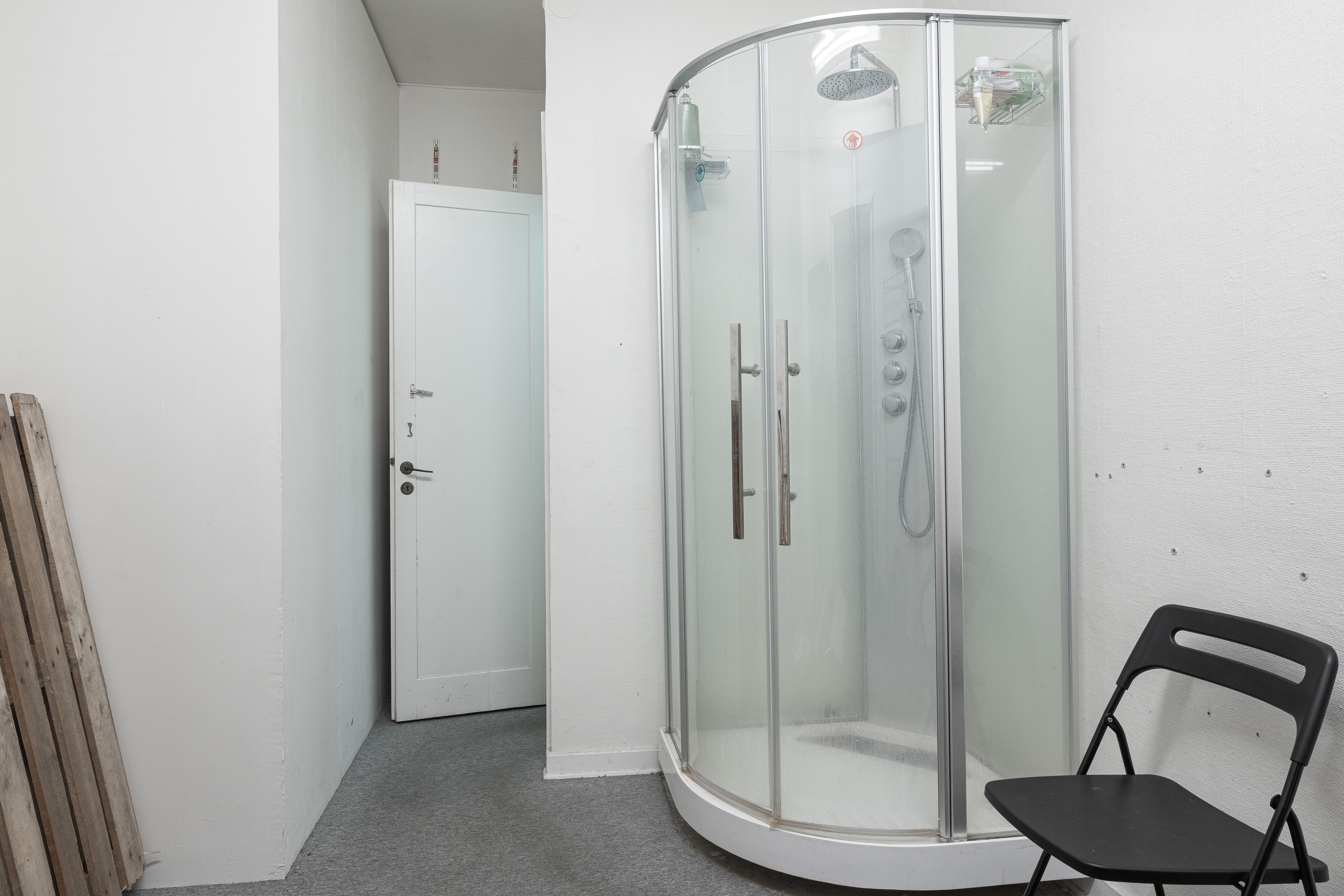 Här finns pentry, dusch och omklädningsrum, vilket gör lokalen komplett för både klienter och personal.