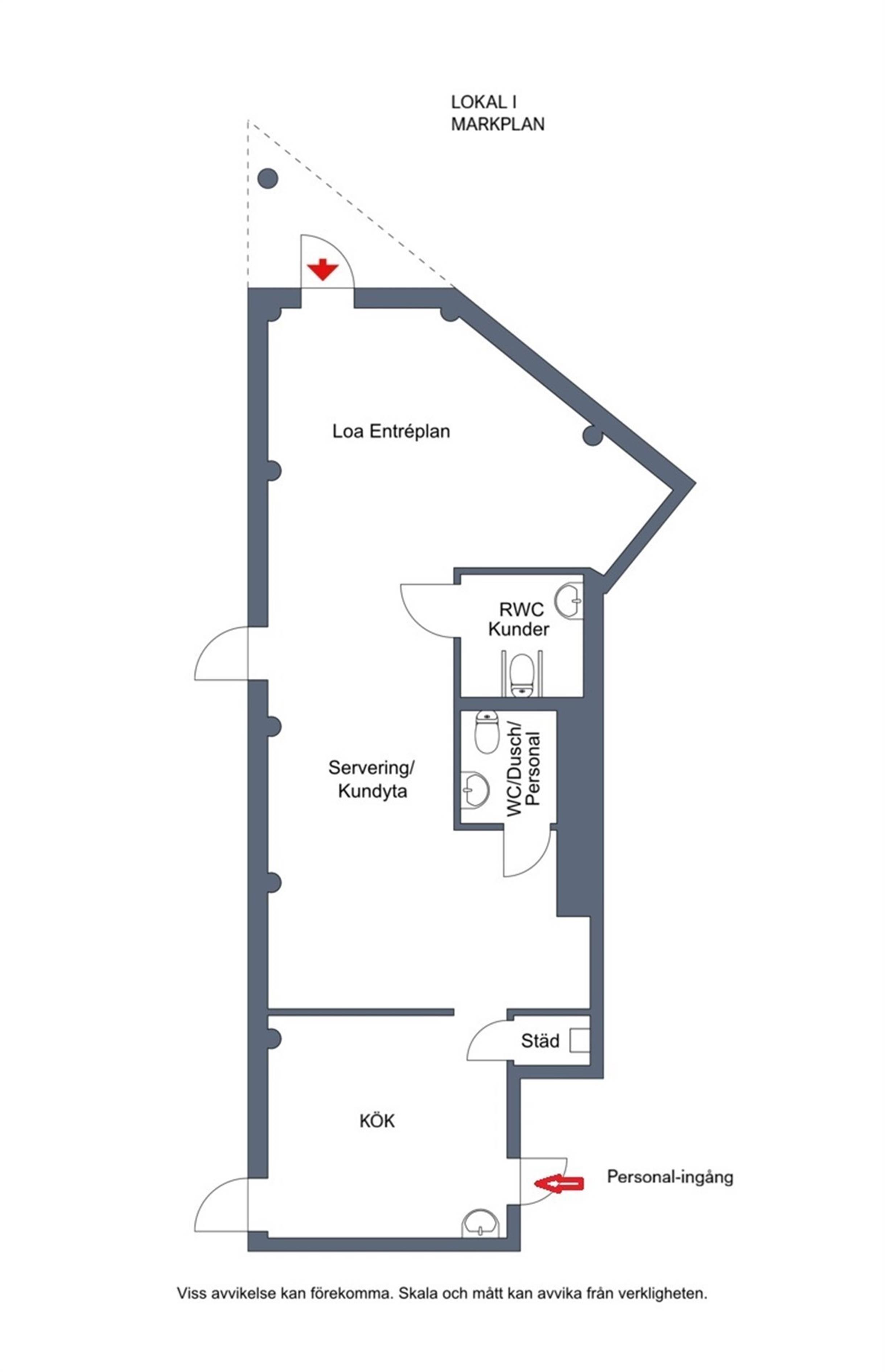 Lokalen passar som butik eller verksamhet med lättare tillagning av mat såsom Café, Salladsbar, Tapasbar eller liknande. Passar ej verksamhet inom restaurang med matlagning som kräver kolgrill eller fritering.