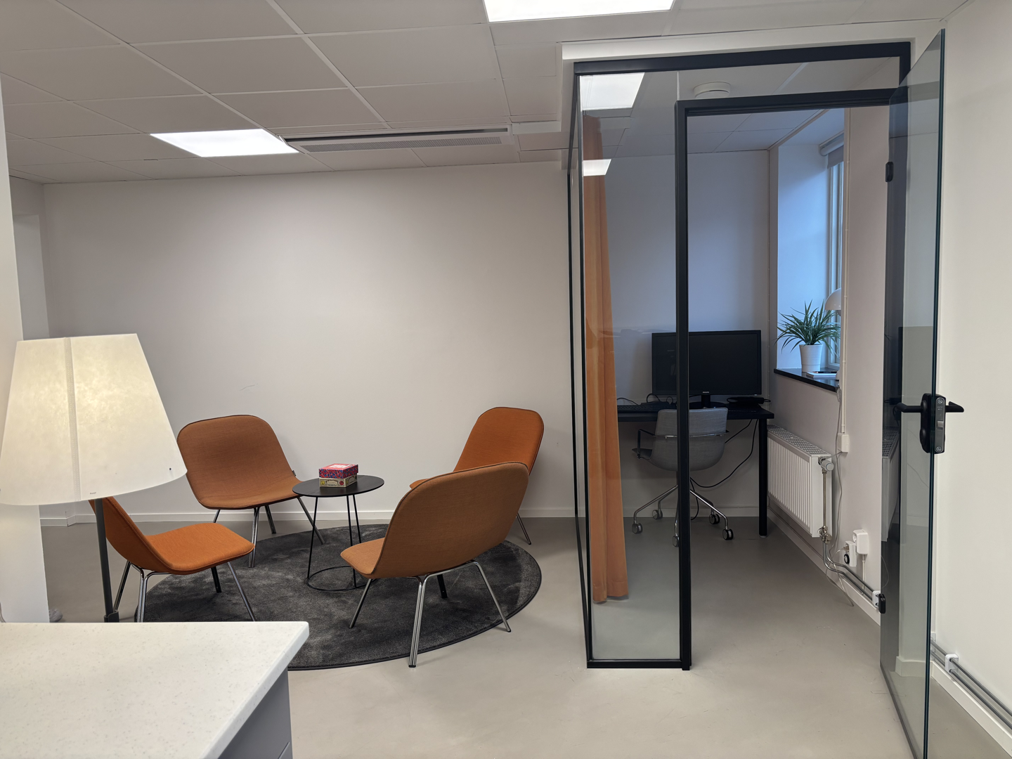 Lokalen präglas av en öppen och social planlösning som skapar en naturlig samhörighet mellan medarbetarna. De luftiga ytorna ger plats för både kreativt samarbete och lugn koncentration.