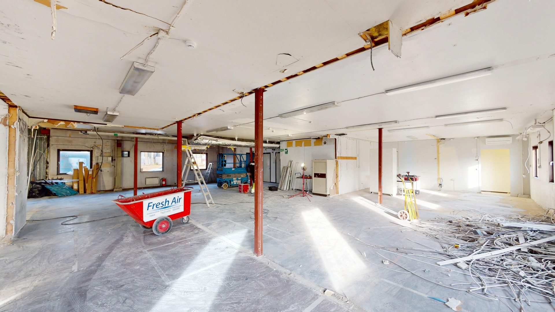 Pågående anpassningar! Just nu rivs innerväggar i markplan för att skapa en mer öppen och anpassningsbar yta – perfekt för den nya hyresgästen!