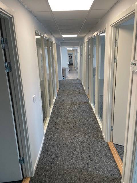 Rumsindelad lokal med tillkommande lager och högport. 10 st egna kontorsrum med tillhörande ytor samt konferensrum.