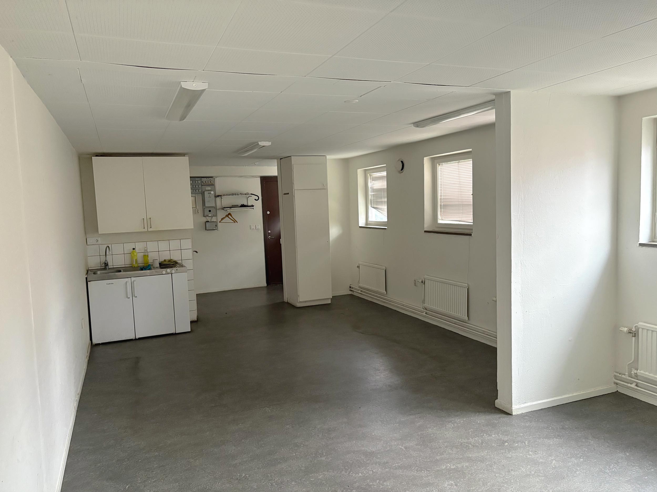 Lokalen har en öppen och lättmöblerad planlösning som kan anpassas efter verksamhetens behov. De stora fönstren ger ett mycket bra ljusinsläpp och skapar en behaglig arbetsmiljö.