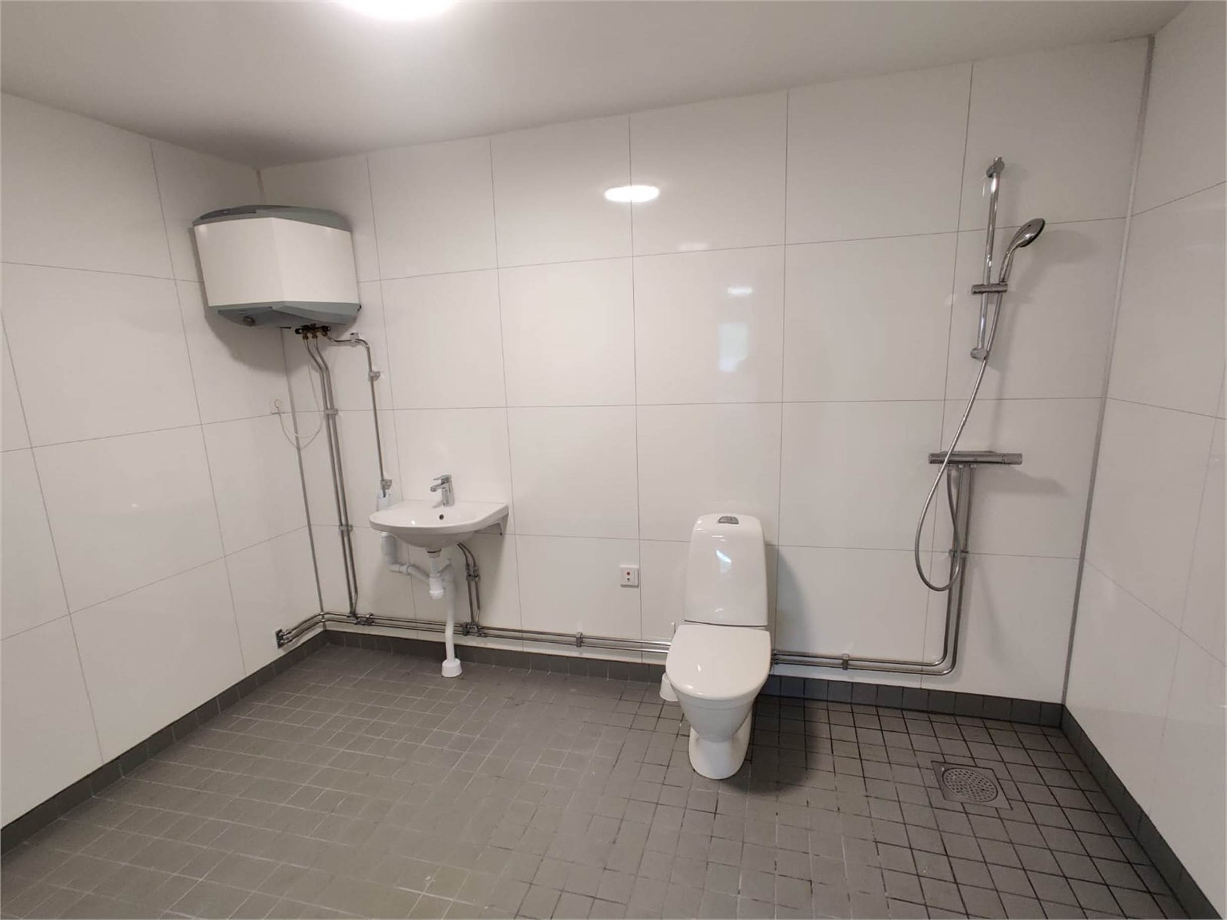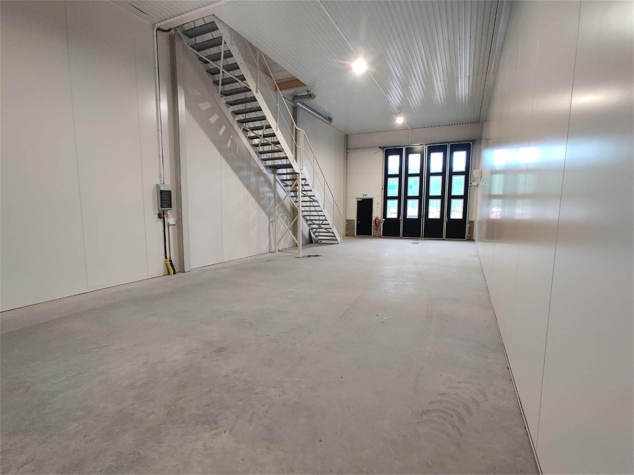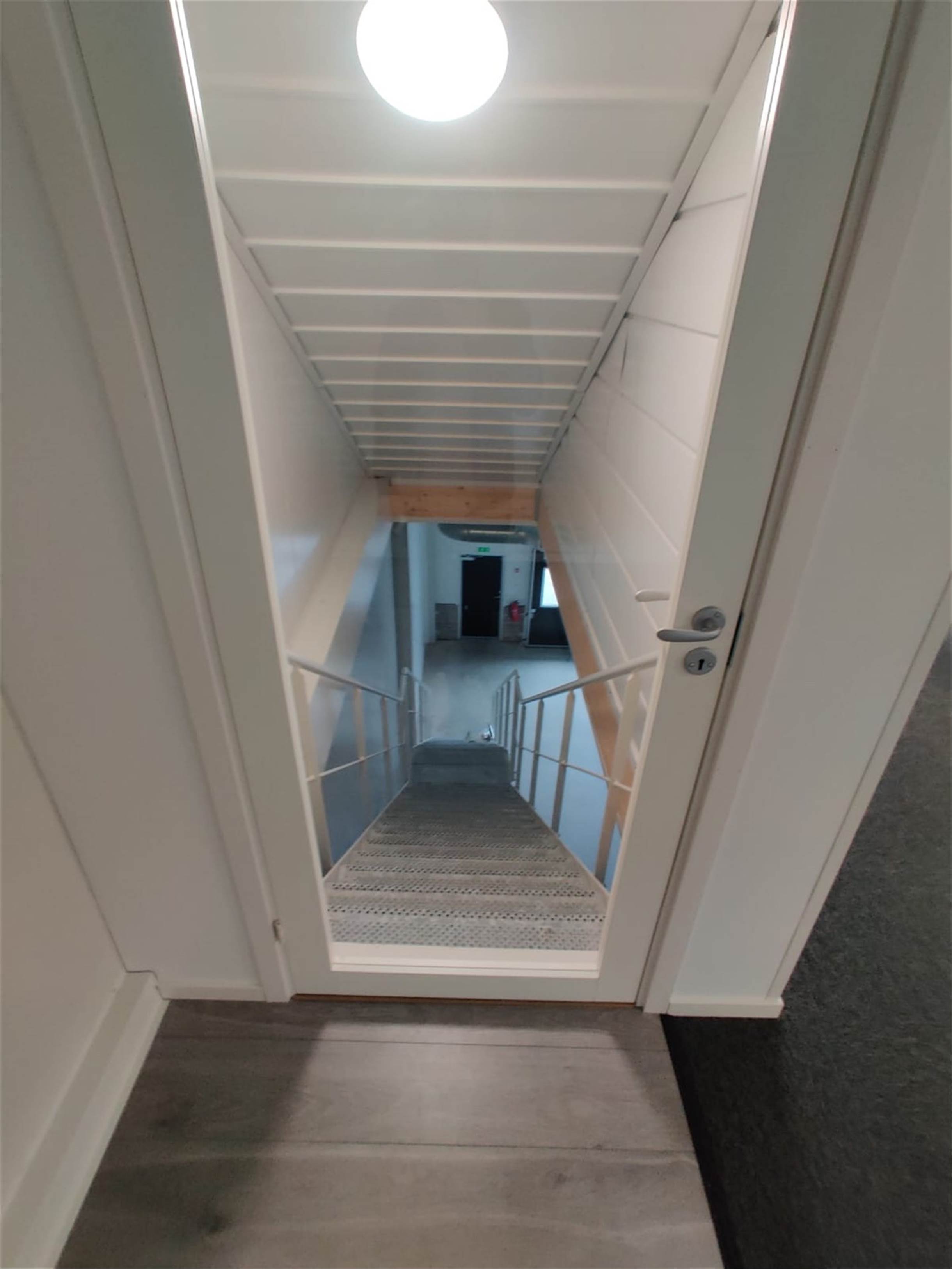 Den nedre industridelen erbjuder en generös takhöjd och öppna ytor som passar utmärkt för lager, verkstad eller lätt produktion. Här finns smidig tillgång via port för in- och utlastning, vilket gör logistiken enkel och effektiv.  En trappa leder upp till kontorsplanet, där du får moderna och ljusa utrymmen för administration och personalytor.