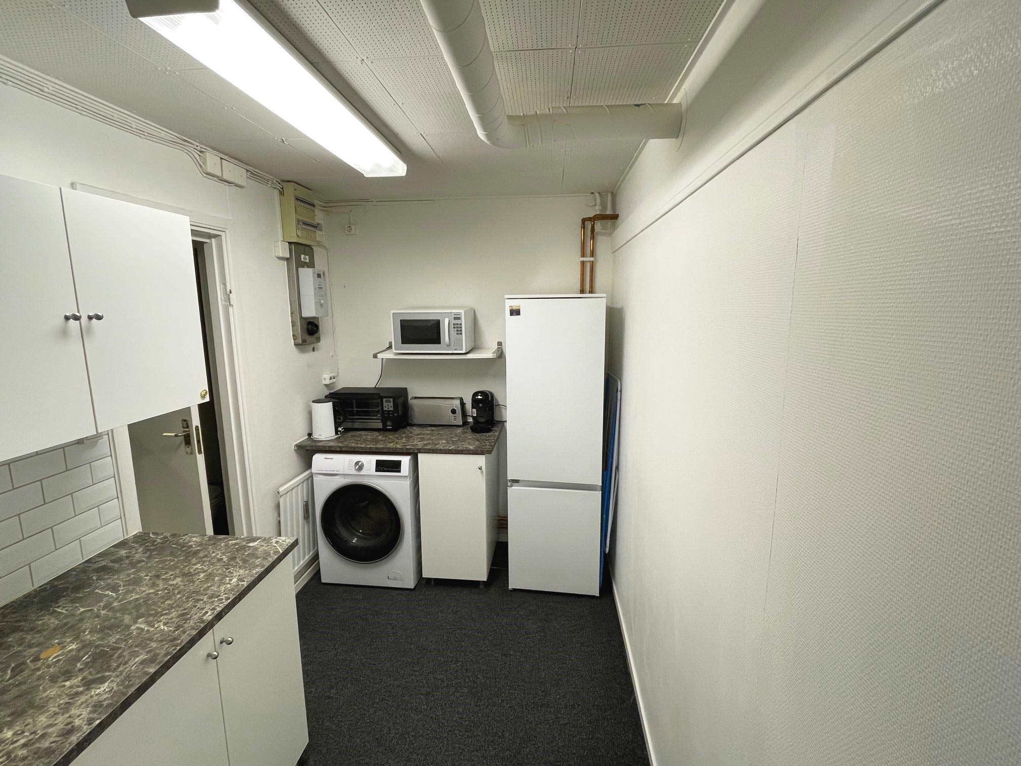 Välplanerad kontorslokal i markplan med egen entré och smidig inlastning via garagedörrar till tillhörande förråd. Perfekt för service- och installationsföretag som söker kombinationen kontor och lager nära Vällingby C.