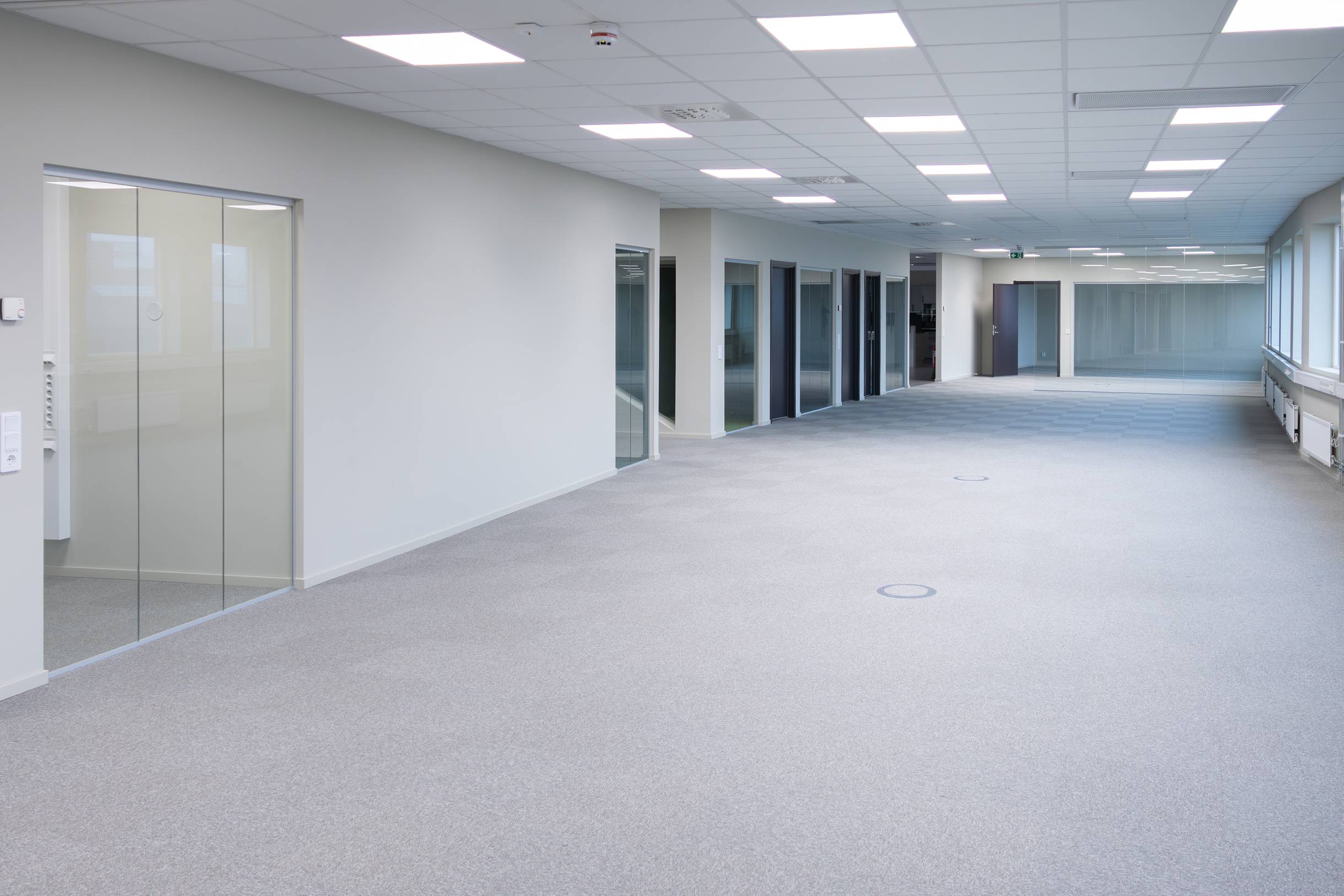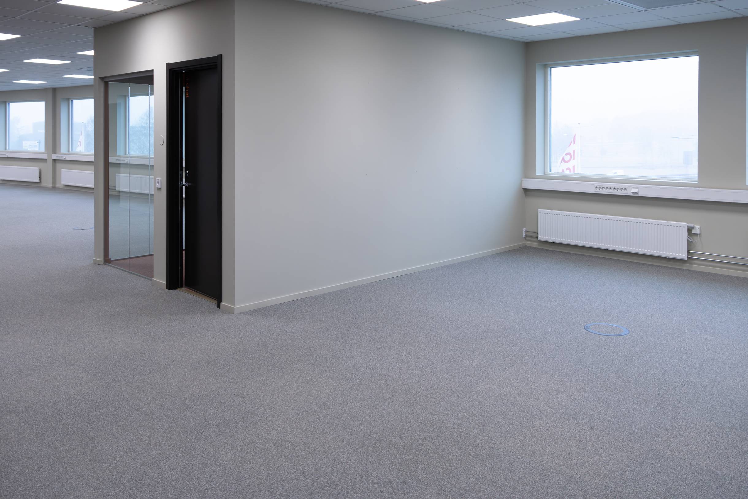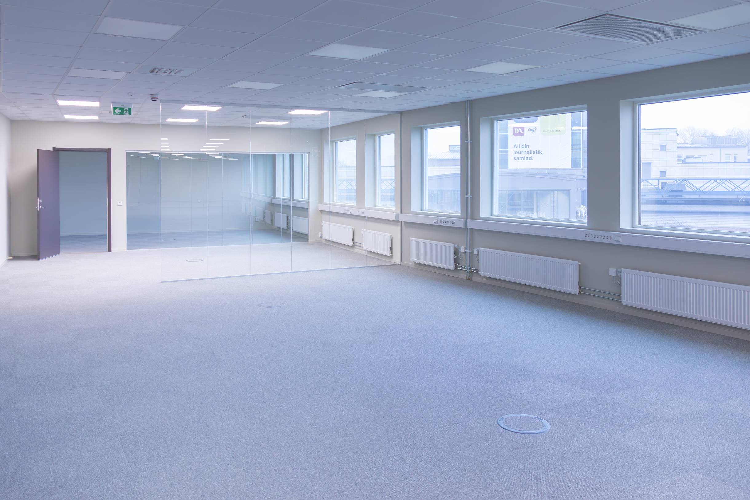 Den övervägande delen av lokalen består av ett generöst öppet kontorslandskap med plats för många arbetsstationer. Här finns dessutom ett separat kontor med utrymme för cirka fyra arbetsplatser – idealiskt för ledningsgrupp eller team som behöver en egen zon.