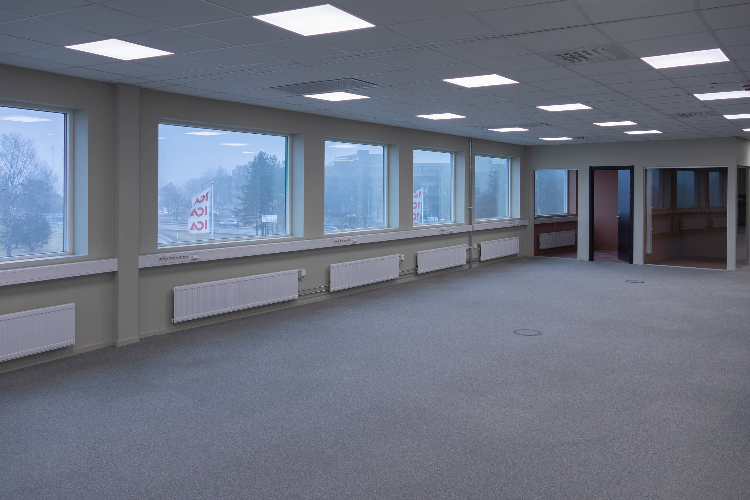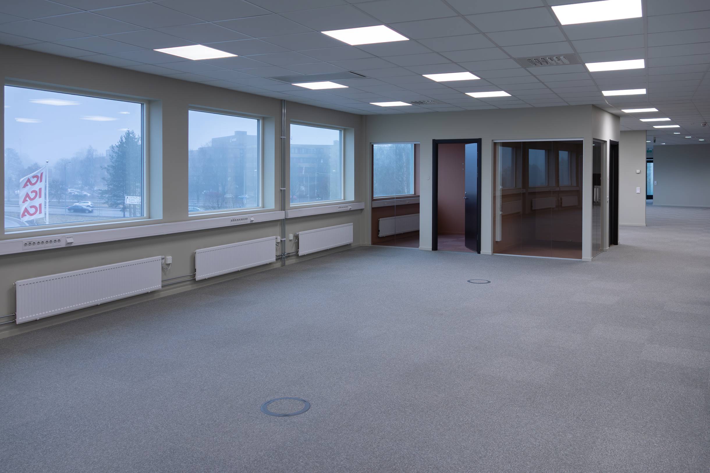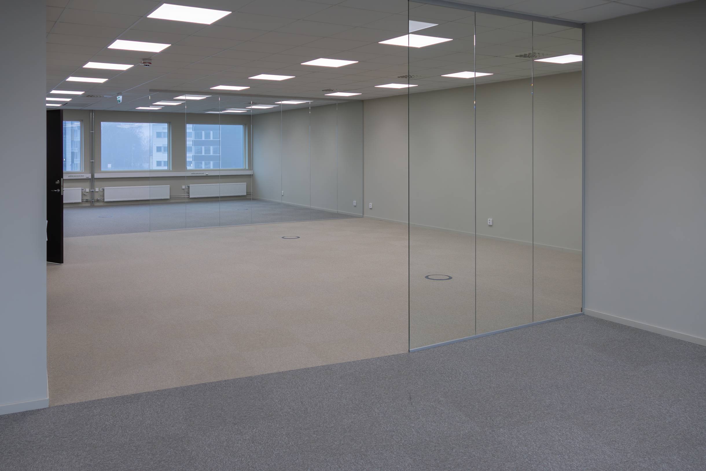Den övervägande delen av lokalen består av ett generöst öppet kontorslandskap med plats för många arbetsstationer. Här finns dessutom ett separat kontor med utrymme för cirka fyra arbetsplatser – idealiskt för ledningsgrupp eller team som behöver en egen zon.