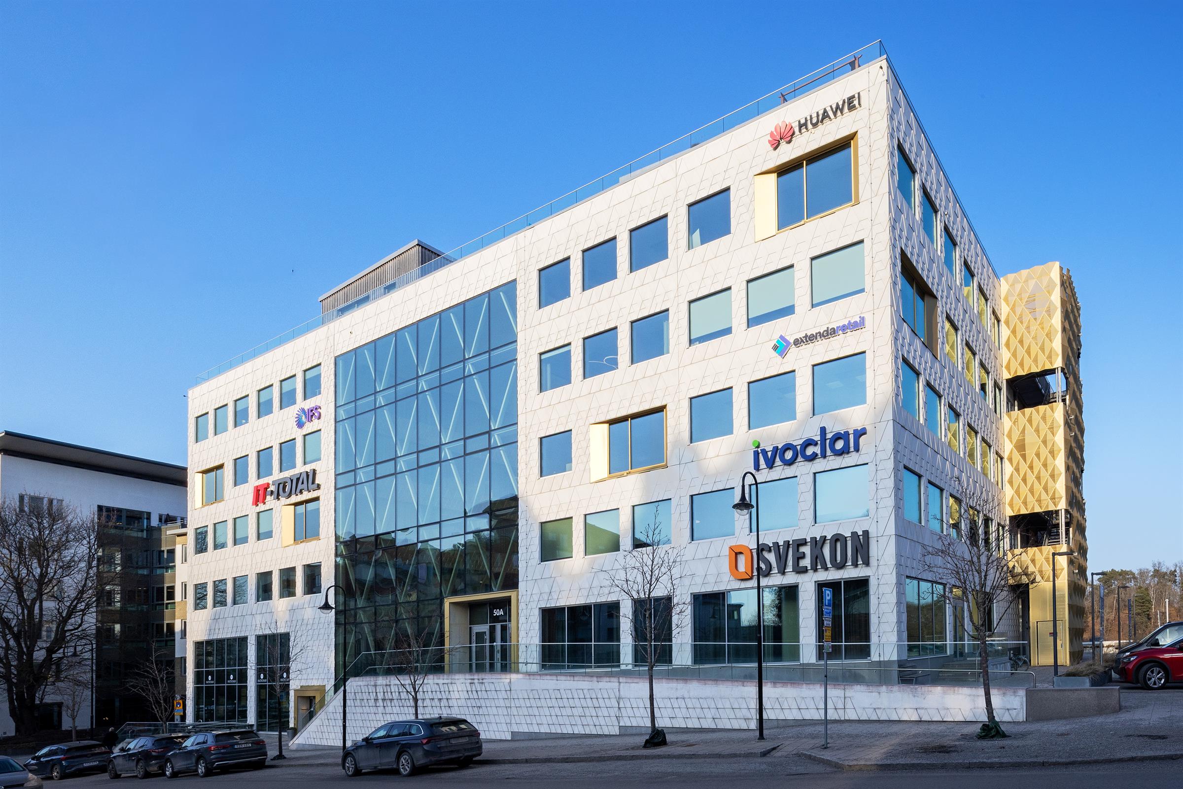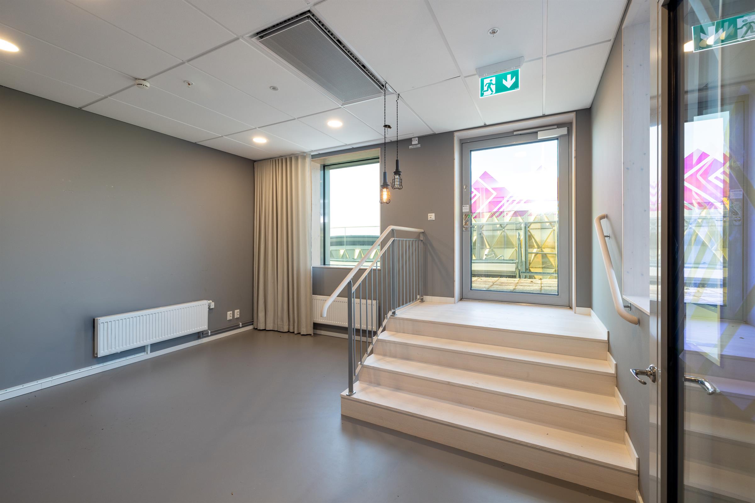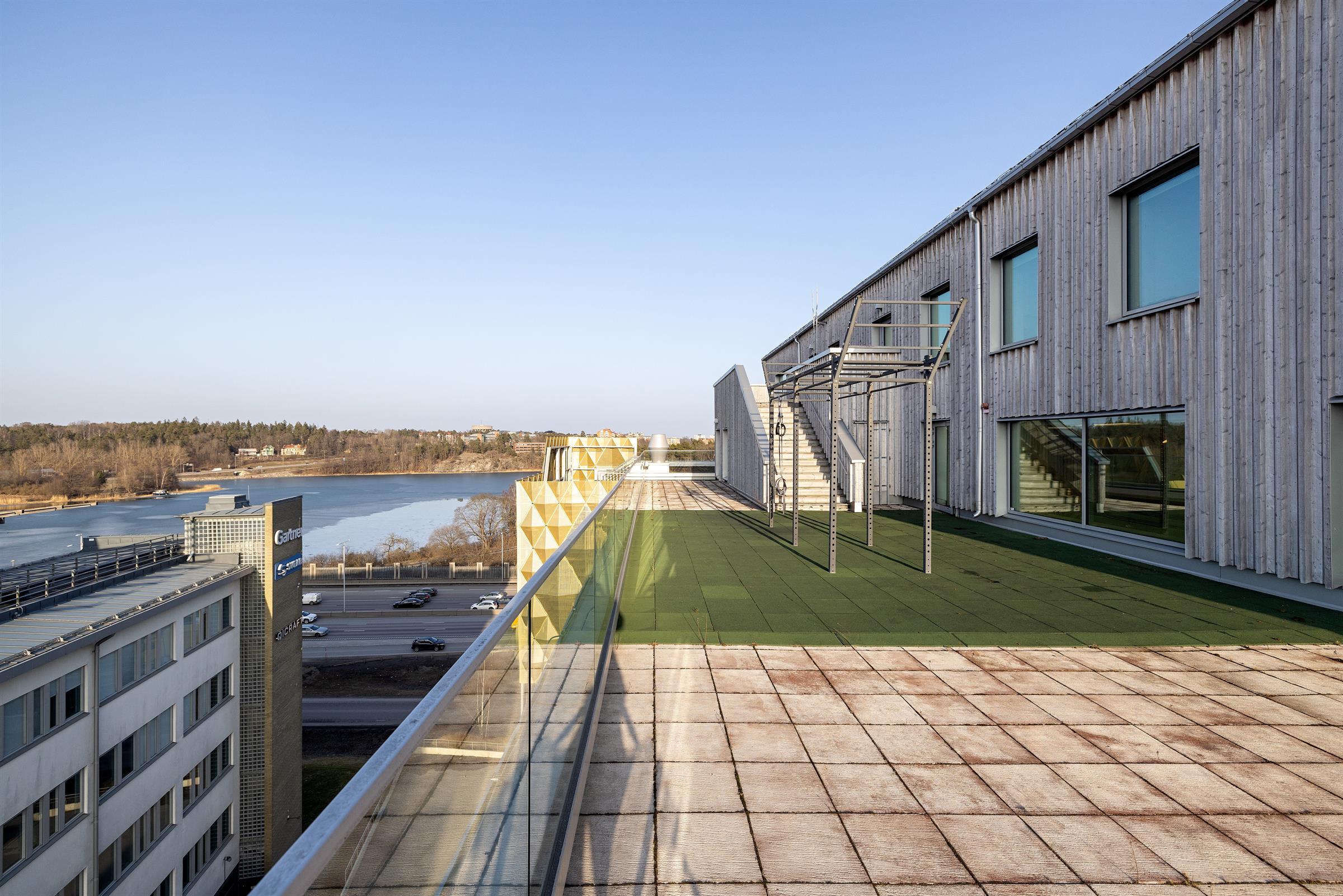 Egen, stor terrass om ca 190 kvm med fint solläge. Modern fastighet med centralt läge i Frösunda. Flexibel arbetsyta med plats för många i ljusa lokaler. Trappa och glasad dörr ut mot terrassen. Terrass med plats för både möten och pauser. Mötesrum med glasväggar och ljus från intilliggande ytor Glasad fasad med otroliga ljusinsläpp i fastighetens entré. Rum för fokus eller möten i avskild del av lokalen- Öppen arbetsyta med ljusa väggar och genomgående ljus.