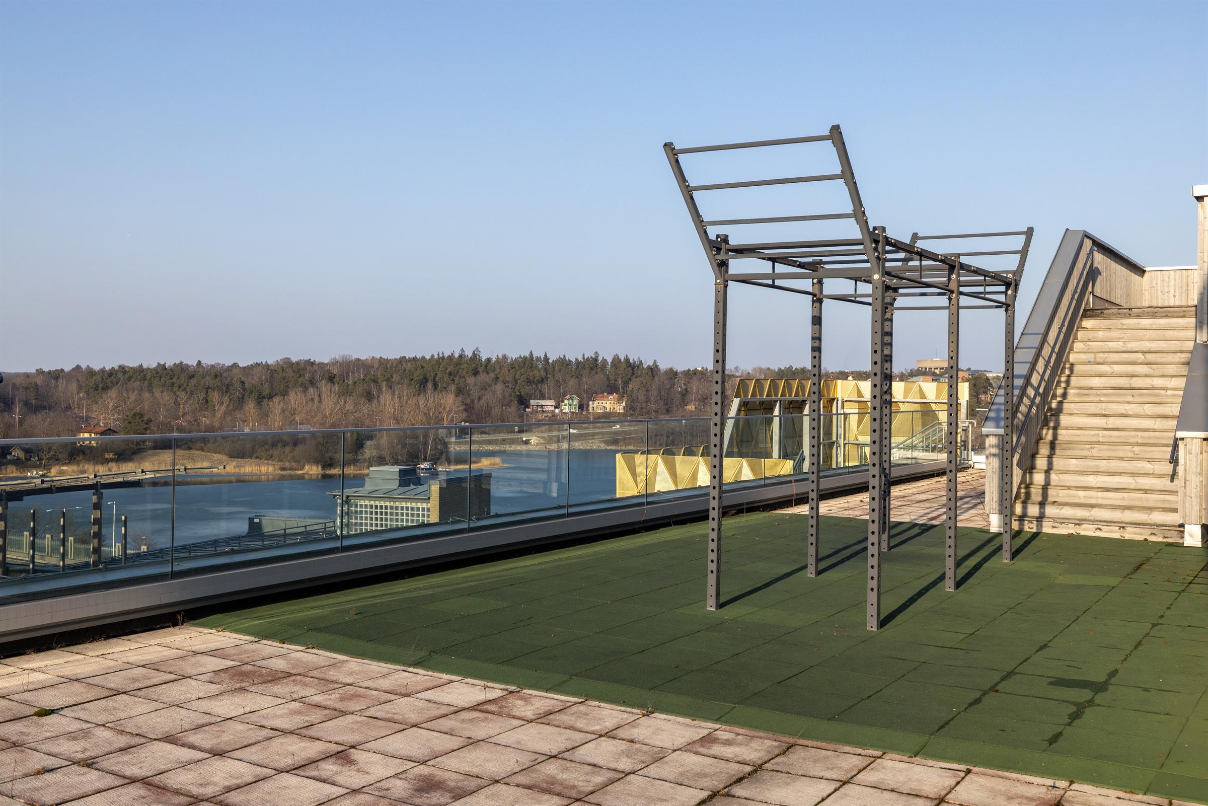 Högt upp i huset med ljus, rymd och en egen plats i solen Högt upp i huset på våning 5 möts ni av en ljus och yteffektiv kontorsmiljö med generösa fönsterpartier och modern känsla. Här startar dagen med ljus över arbetsplatserna och en naturlig samlingspunkt i anslutning till kök och sociala ytor. Den stora egna terrassen om cirka 190 kvm blir snabbt en favorit – för morgonkaffet, ett informellt möte eller en paus i solen, med fint solläge och viss utsikt över Brunnsviken. Moderna ytor som stöttar arbetsdagen På 336 kvadratmeter får ni en yteffektiv och genomtänkt arbetsmiljö med 28 skrivbordsplatser, kompletterat med touchdown-platser, fokusplatser och mötesrum. Planlösningen gör det enkelt att växla mellan gemensamt arbete, spontana avstämningar och lugnare stunder för fokus. Här finns en naturlig rytm i arbetsdagen, med ytor som stöttar både samarbete och koncentration. Smidigt läge i Frösunda Här arbetar ni centralt i Frösunda med närhet till både service och kommunikationer. Buss stannar runt hörnet och med vår shuttle buss tar ni er enkelt till Solna station. E4:an ger snabb access till city, Arlanda och Bromma, och i närheten finns både Mall of Scandinavia och Friends Arena. Till lunch finns flera alternativ i området, men också något som många uppskattar – närheten till Hagaparken och Brunnsviken. Här går det lika bra att ta en promenad längs vattnet som att få till en kort löprunda för ny energi mitt på dagen. Läs mer om läge Frösunda Service och funktion i huset Fastigheten som är miljöcertifierad med LEED Platina och välkomnar med en representativ entré, lounge och restaurang i entréplan. Det stora glasade atriumet ger fint ljus och rymd, och högst upp finns en gemensam takterrass att boka. Här finns även cykelhubb, dusch och omklädningsrum samt garage och markparkering. Boka visning Vi hjälper er gärna att hitta rätt kontor i Frösunda.