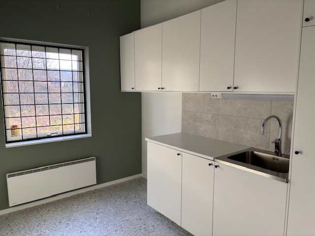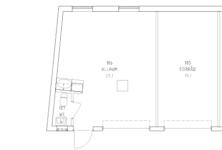 Kontorsdelen är 30 m2 och lagerdelen är 15 m2.