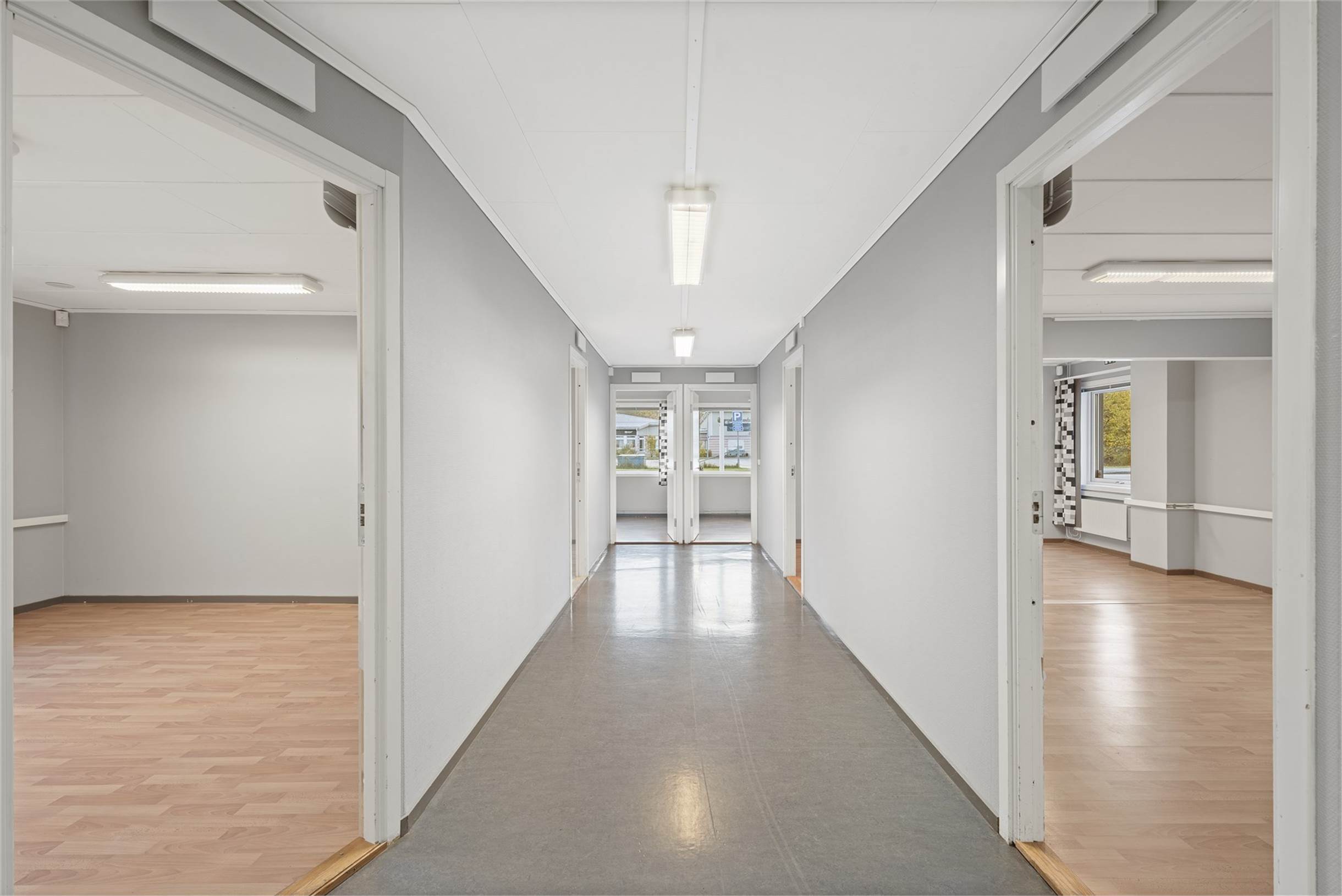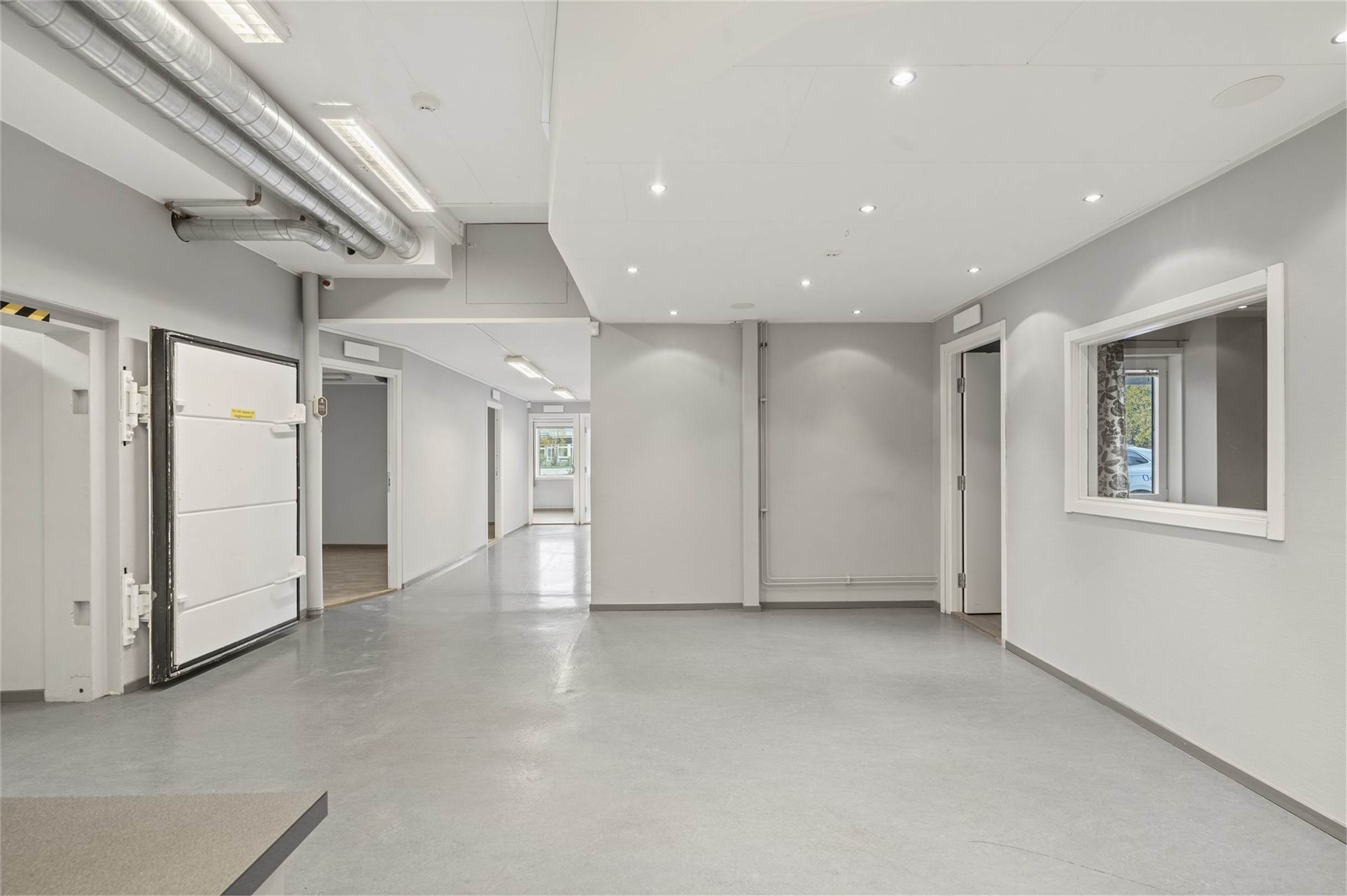Kontoret om 281 kvm inrymmer en stor öppen entré som direkt till höger har två kontor/lager, två förråd/lager samt omklädningsrum. Från entrén rakt in i lokalen möter man en öppen social yta med kök och rymligt plats för ett större matbord med många sittplatser. Innan för köket finn ytterligare två rum där ett har fönster och brukas som kontor och rummet bredvid som förråd/lager. Till höger från köket finns en inre hall med två toaletter och städskrubb. Till vänster om den sociala delen går en korridor med ett större konferensrum samt fyra kontor. Två av kontoren är stora och rymmer två arbetsplatser. Här har alla rum har flera fönster vilket ger ett rikligt ljusinsläpp. Ett genomgående trevligt och effektivt kontor med bra planlösning.