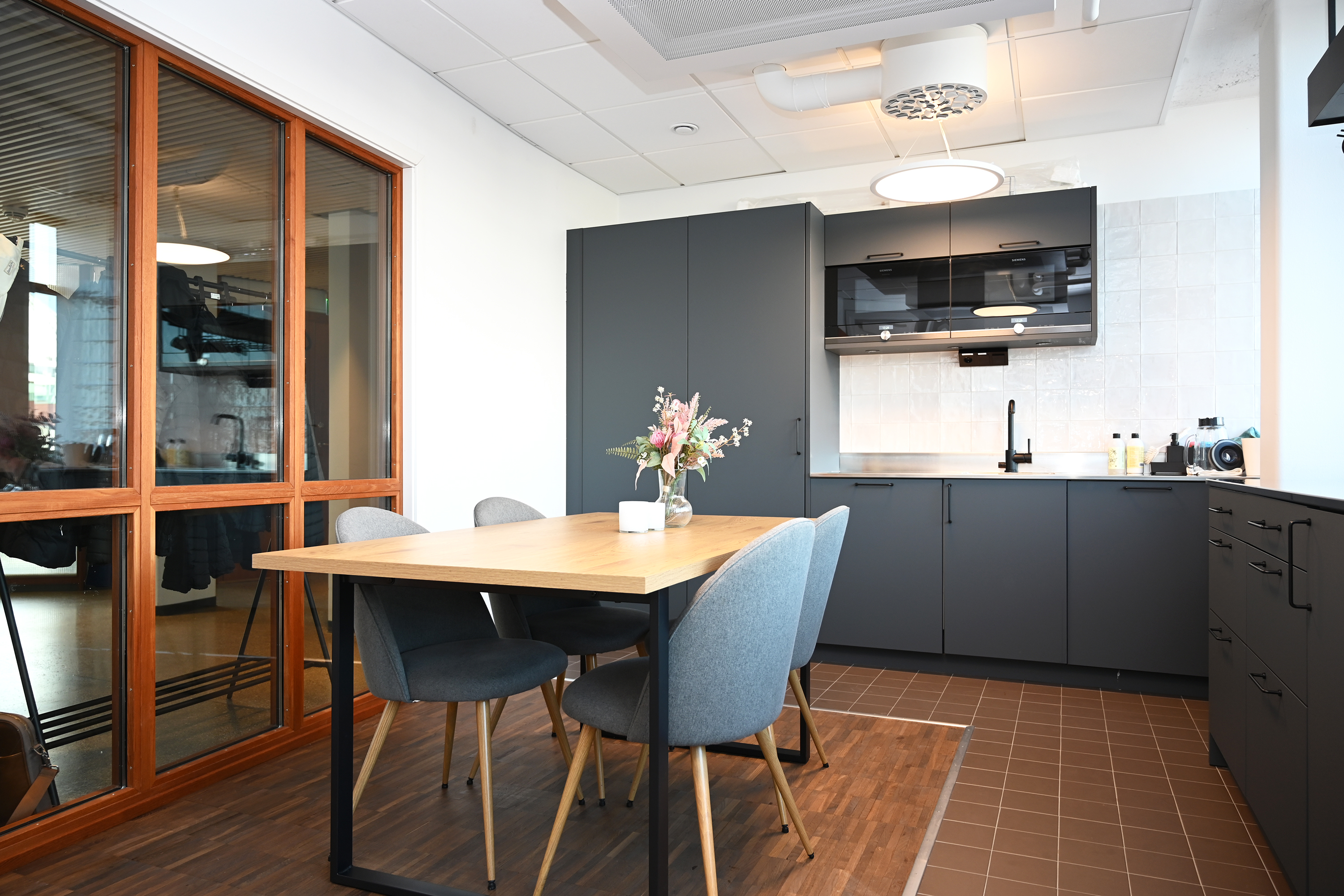 Öppen planlösning med två mötesrum samt ett telefonrum. I lokalen finns även ett trevligt pentry med plats för sittplatser samt städförråd och två st WC varav en med dusch.