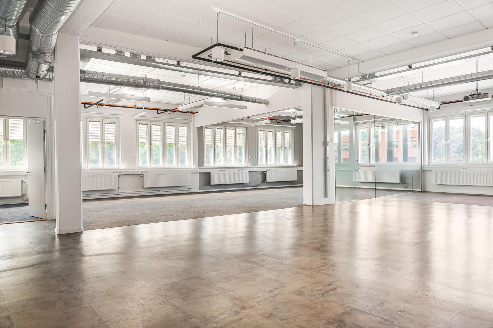 Den lediga lokalen ligger högst upp i huset med god utsikt mot Hammarbybacken i en fastighet med industriell karaktär. Lokalen erbjuder en generös takhöjd och stora fönsterpartier vilket bidrar till ett fint och naturligt ljusinsläpp som skapar en härlig energi.