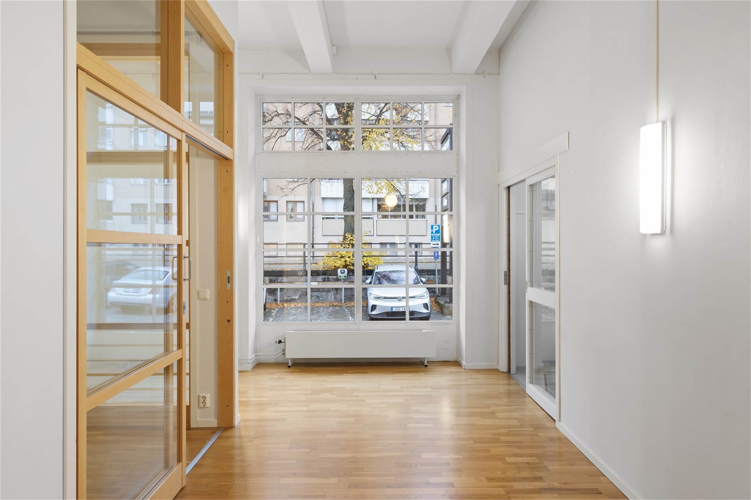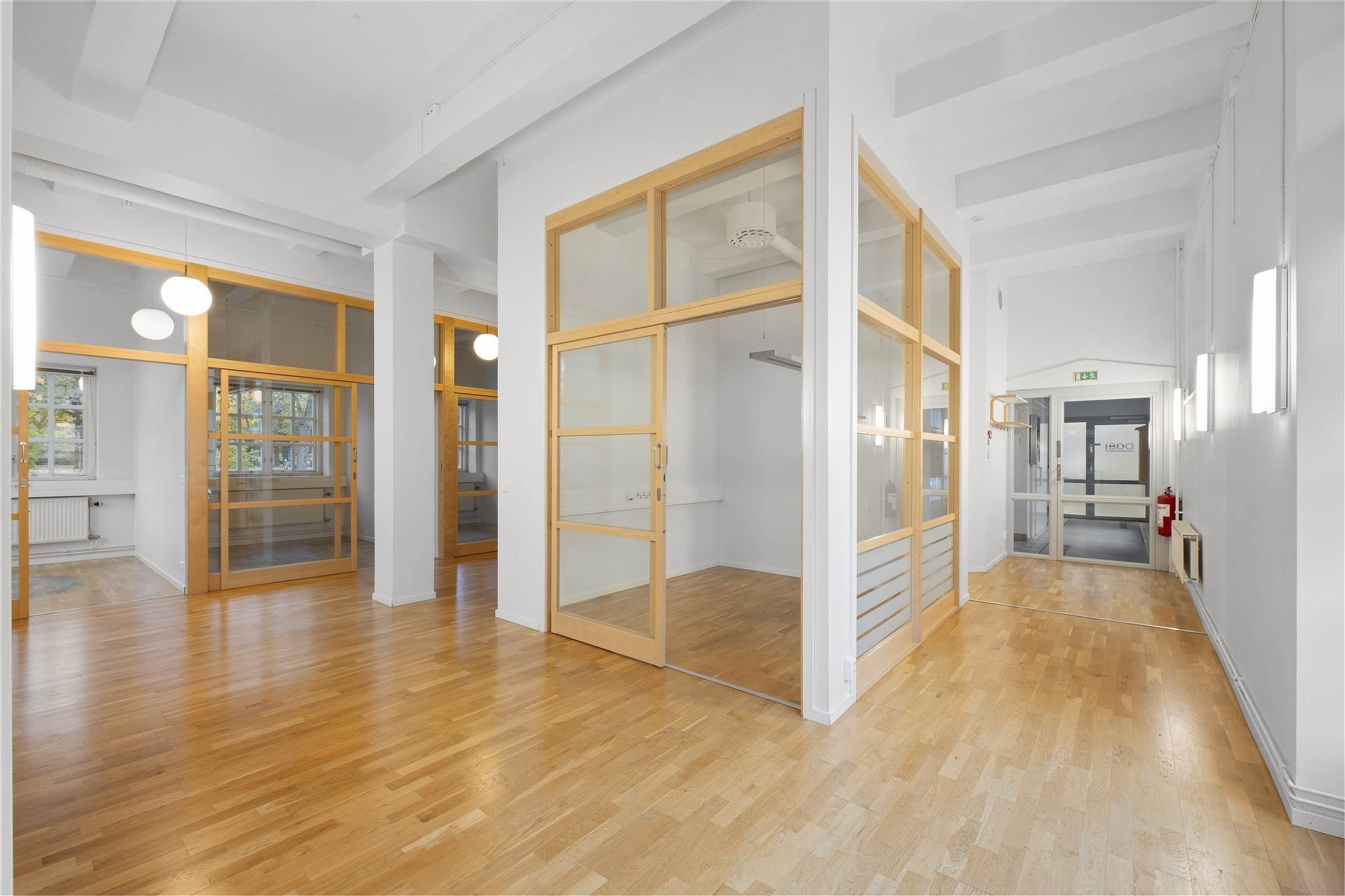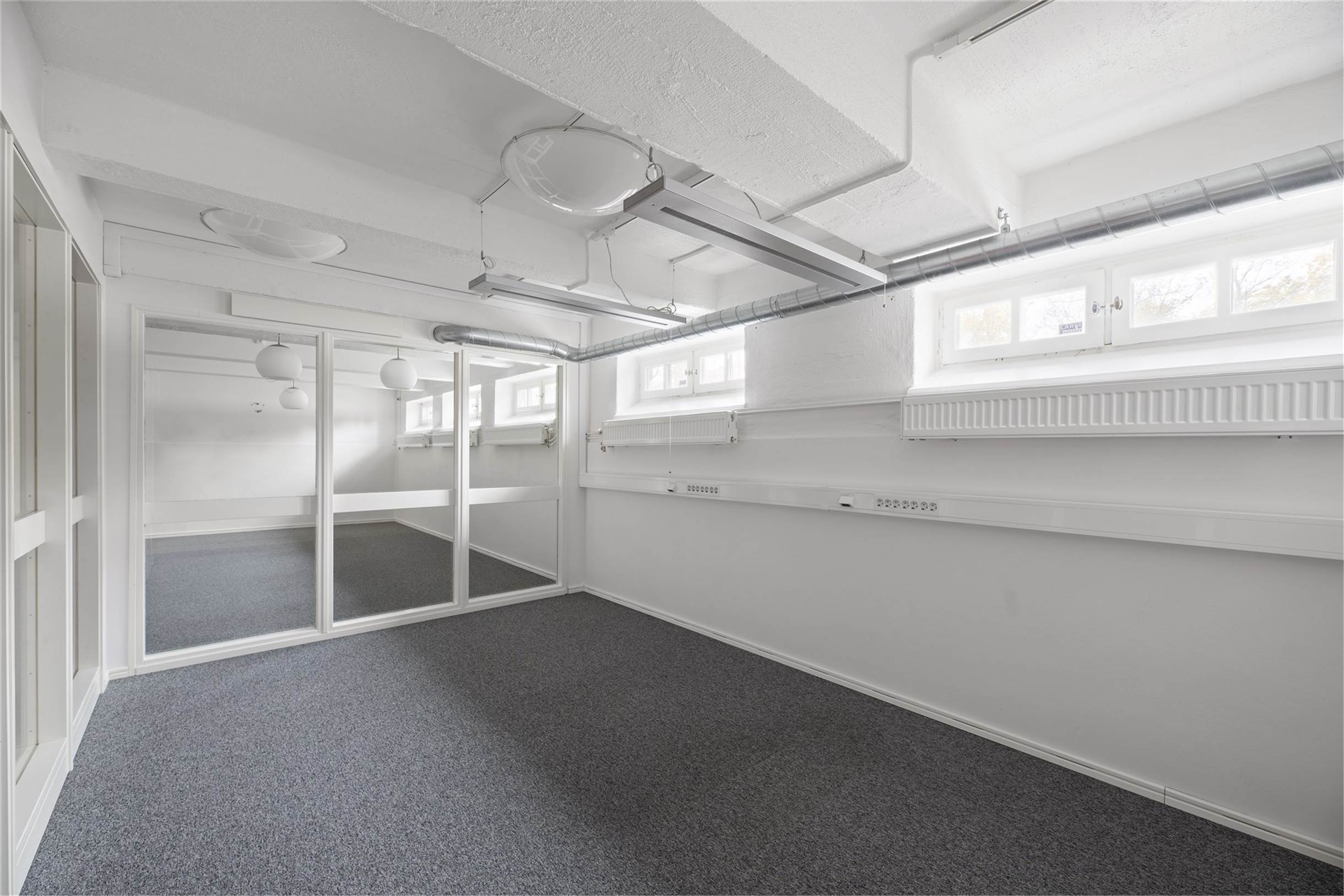 Kontoret är i två plan med en äldre charm i modern tappning. Genomgående ljusa ytskikt och en tilltalande planlösning med både separata kontor och kontorsrum där det går att sitta flera.