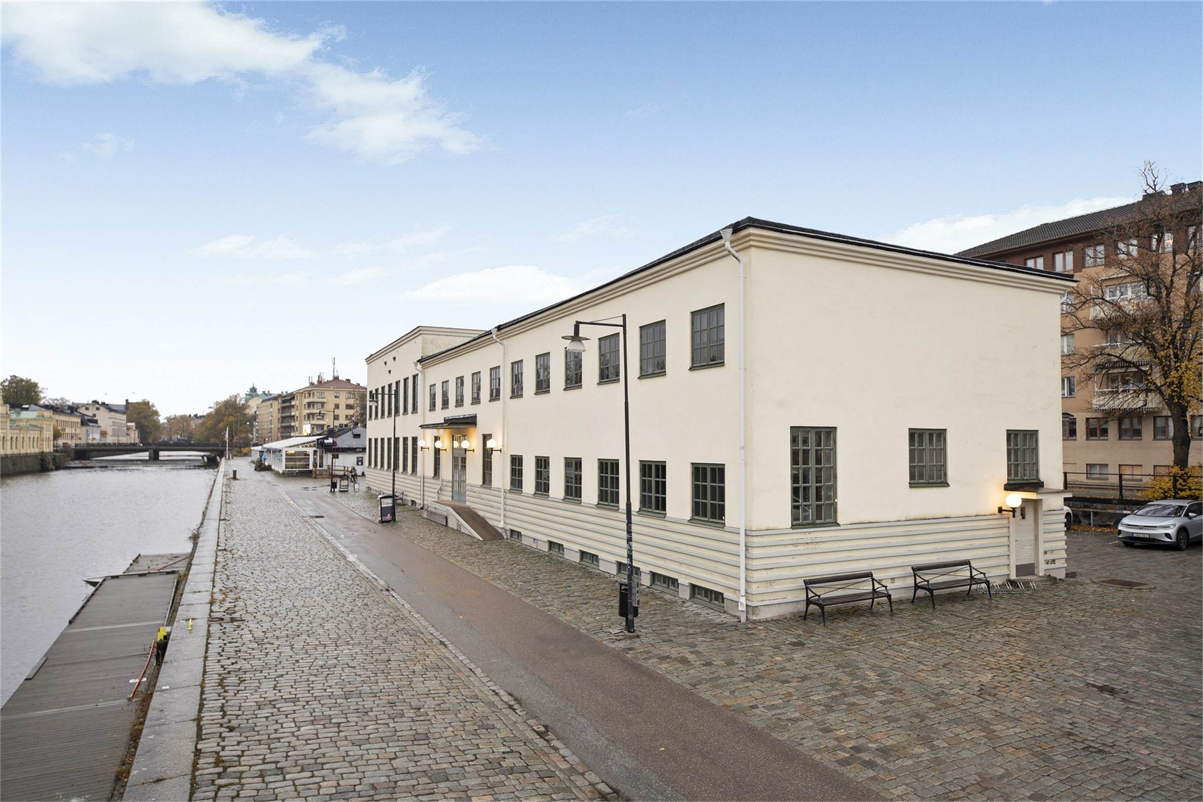 Läget är perfekt med de vackra miljöerna kring Fyrisån, stadsparken samt restauranger precis utanför lokalen.