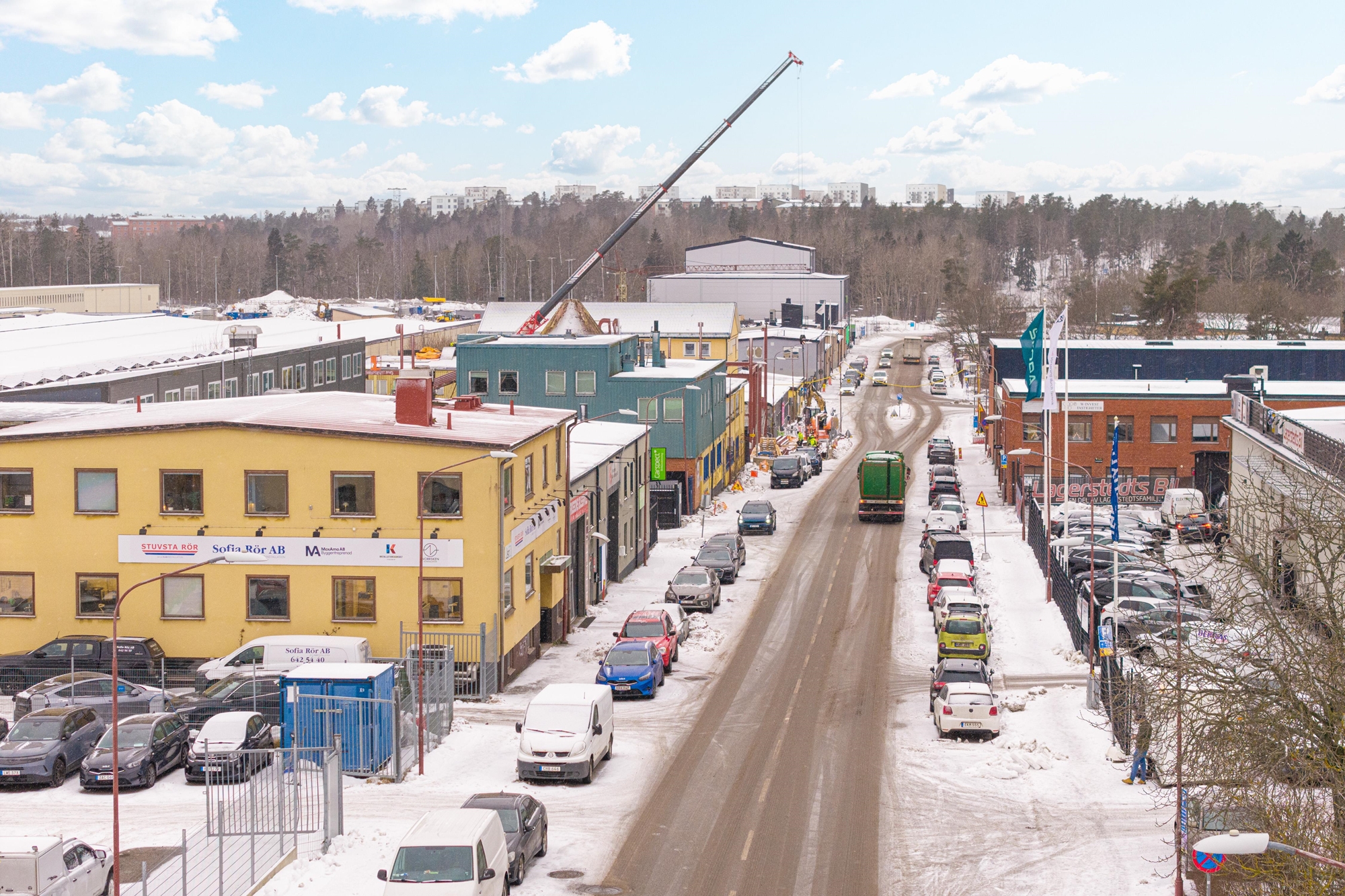 Tunnelbana till Högdalen och bussar med hållplats i direkt anslutning till fastigheten innebär smidig access för både personal och kunder. Med närhet till större trafikleder gör logistiken enkel.