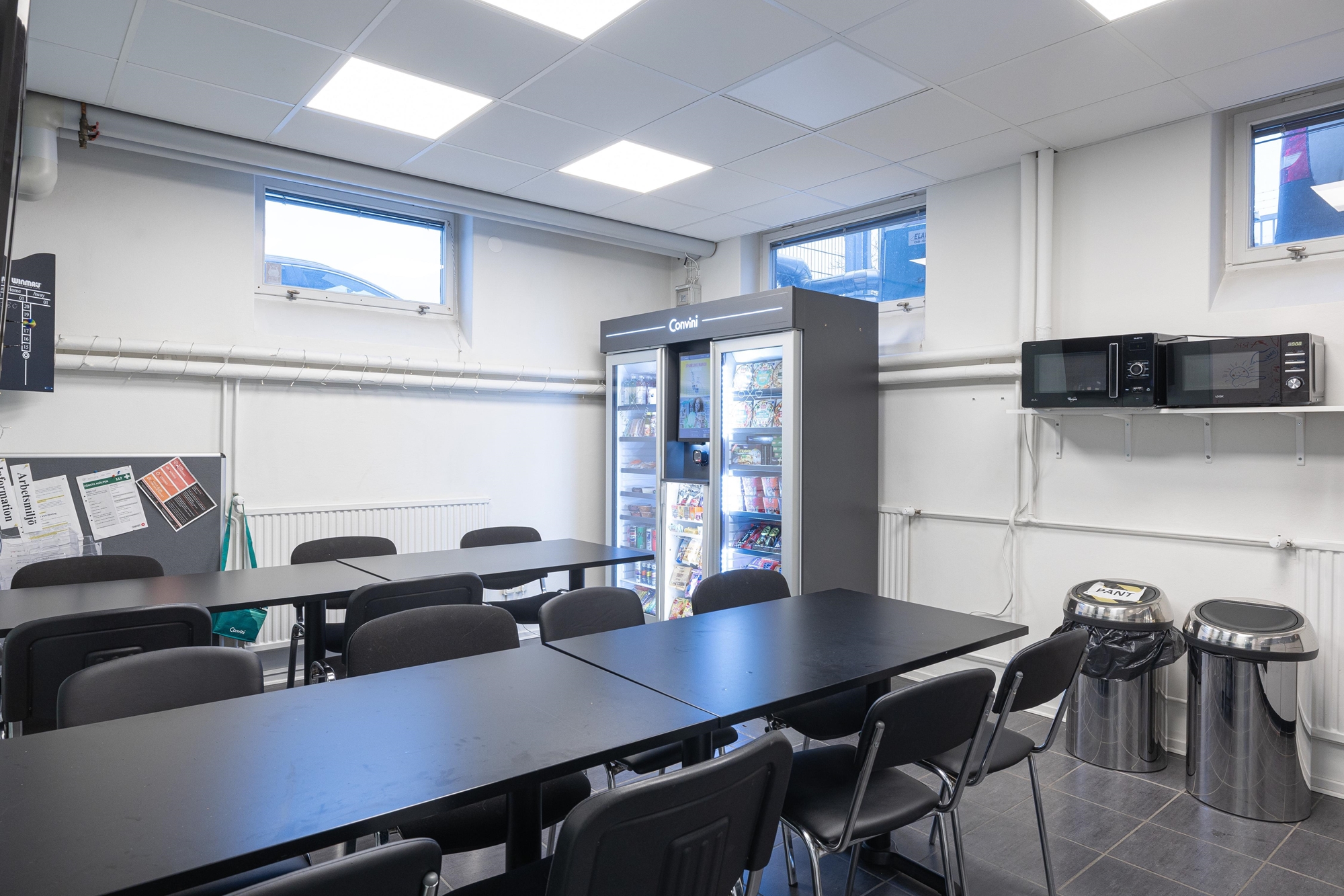 - Personalvänliga faciliteter i källaren, inklusive gym, omklädningsrum, dusch, samt personalmatsal