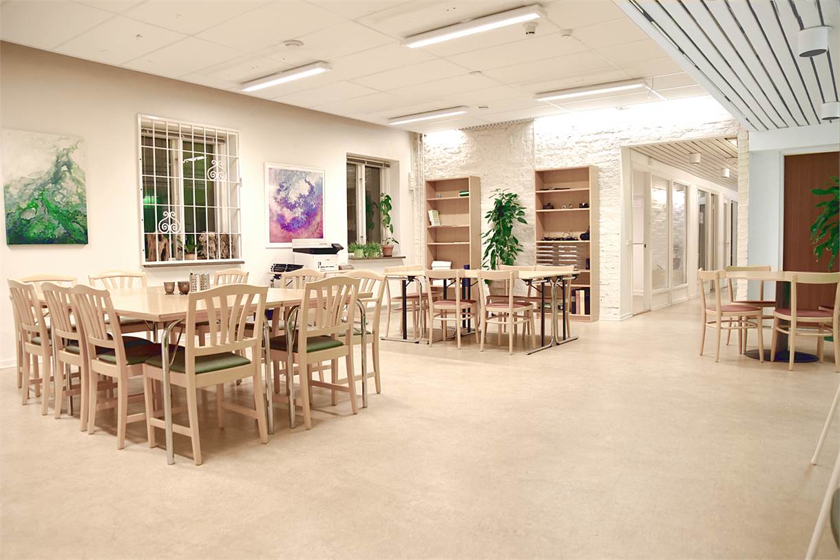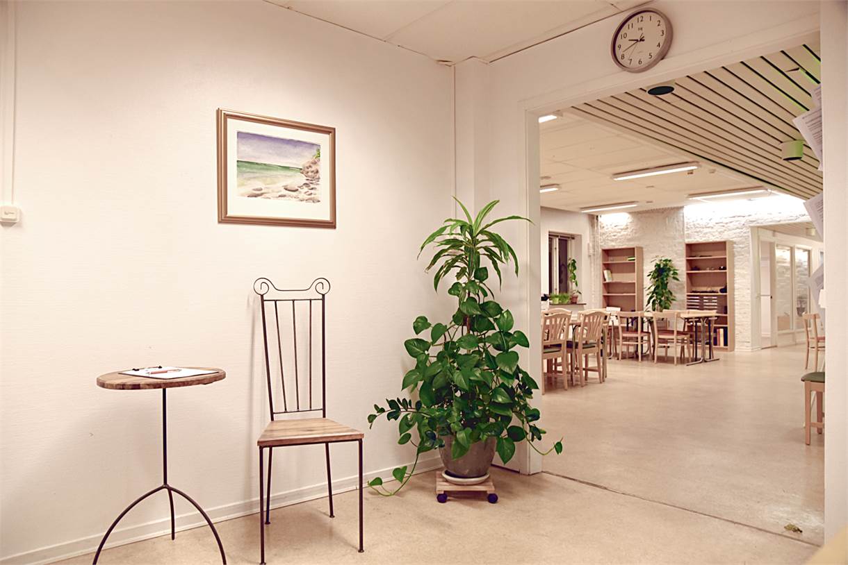 Beläget i ett korsvirkeshus på bottenvåningen, Herkulesgatan 3B, vid Hjalmar Brantingsplatsen (Hisingens centrum), Göteborg omgiven av mycket grönska, välskött trädgård och i en stillsam miljö.