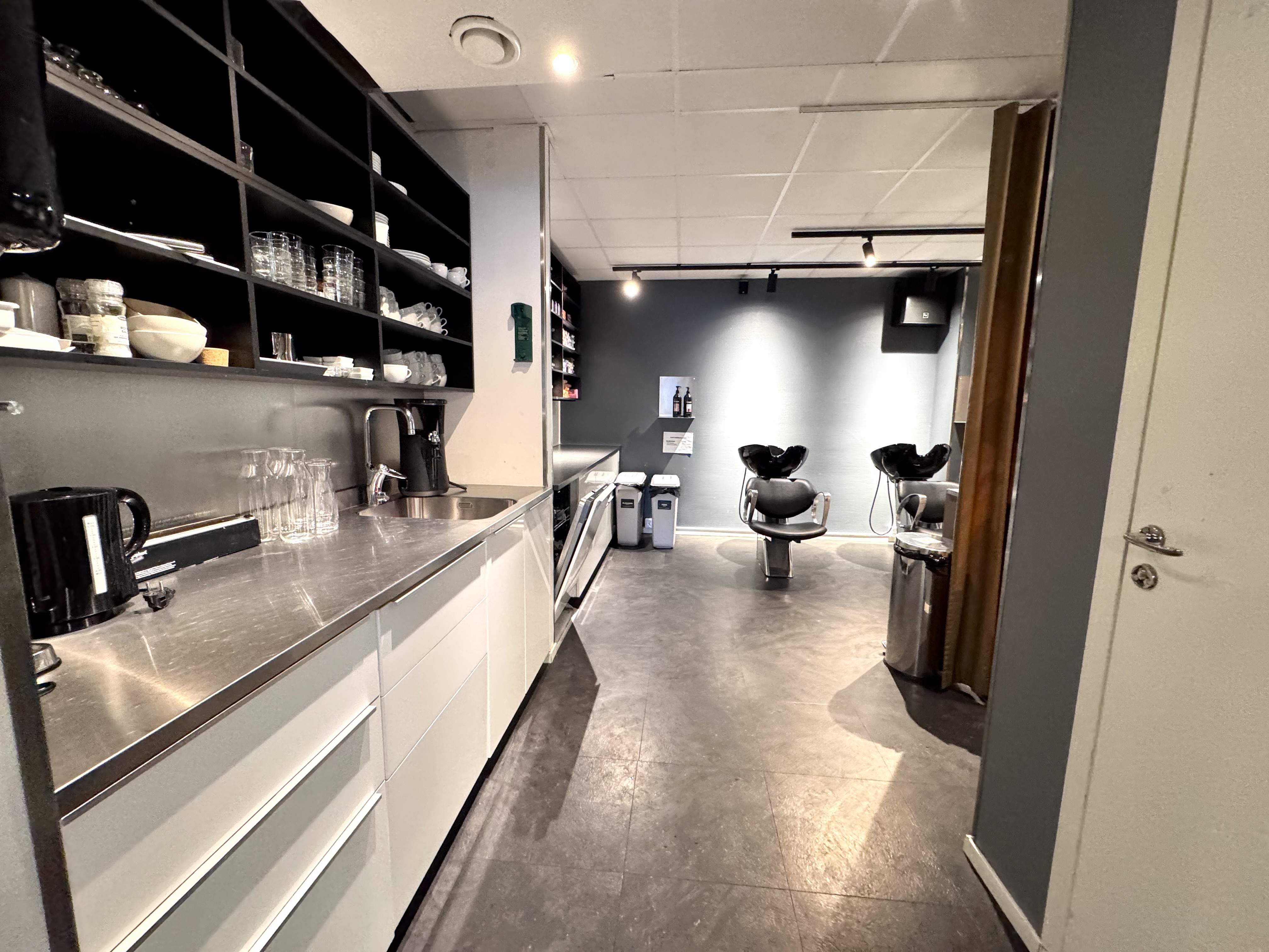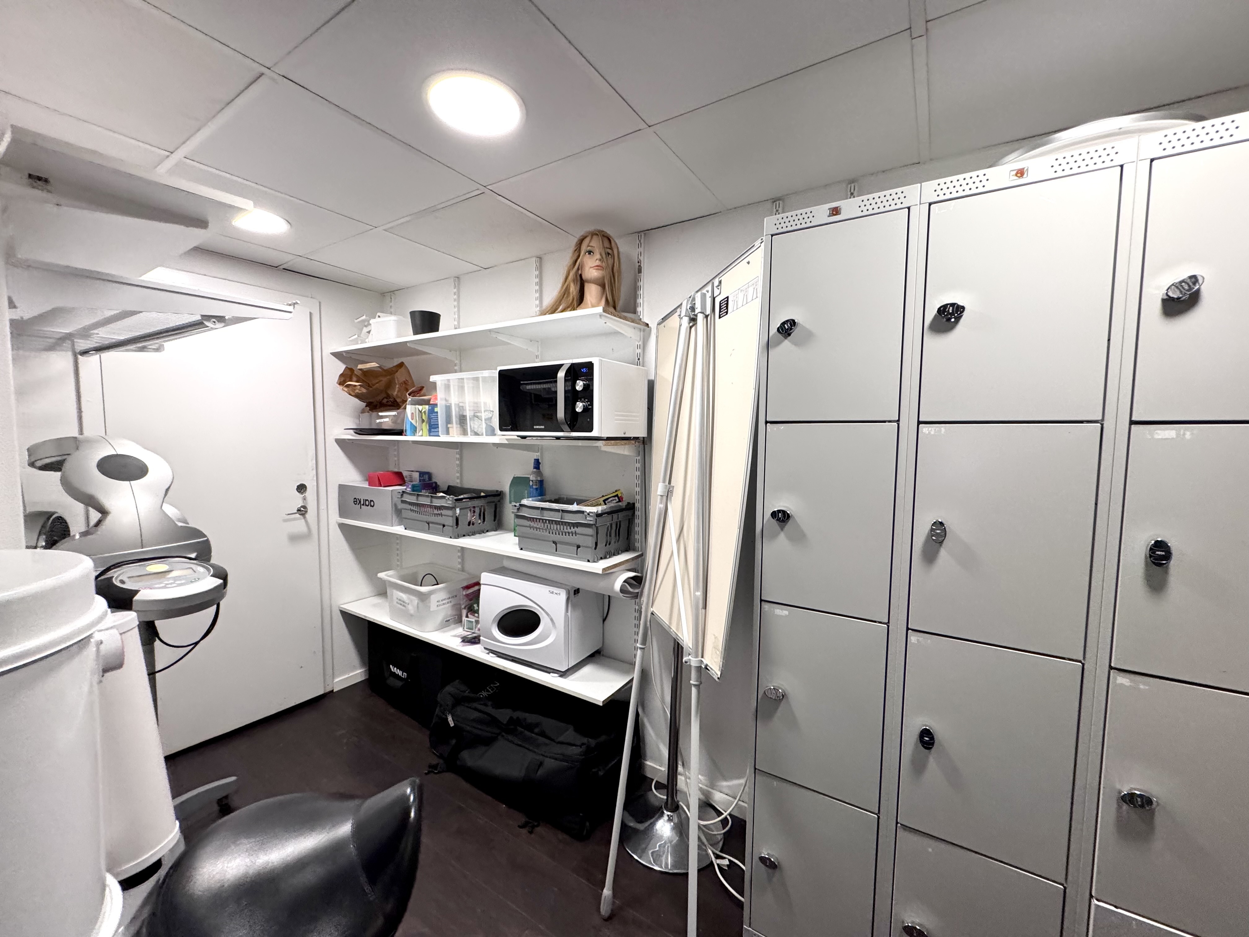 Lokalen är nu indelad och inredd som undervisningslokaler för frisörer och har bland annat ett flertal schamponeringsstationer.