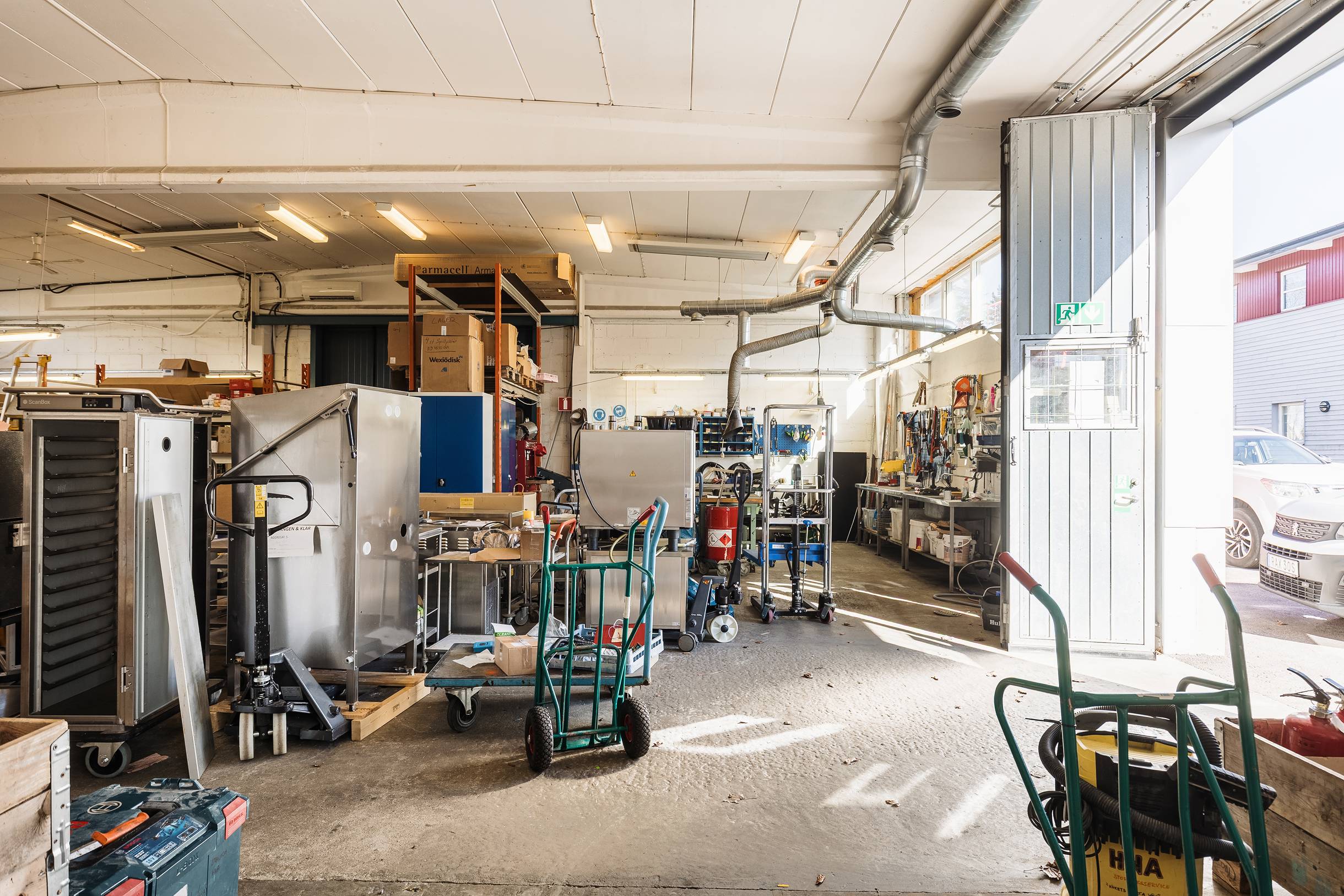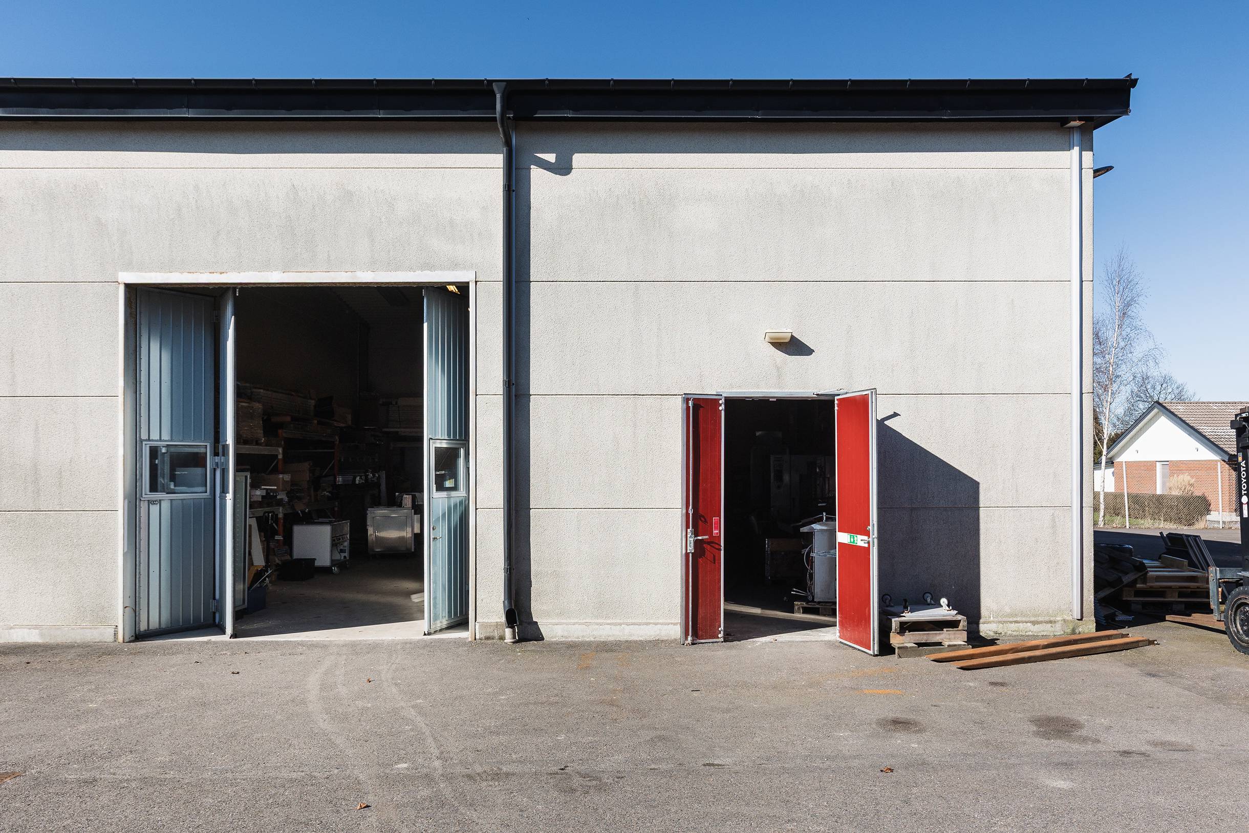 I direkt anslutning finns funktionella lager- och verkstadsytor med god takhöjd, praktiska portar och effektiva logistikflöden. Utanför byggnaden erbjuds generösa uppställningsytor och smidig access för transporter, vilket skapar en effektiv vardag för verksamheter med rörelse. Parkeringsmöjligheter finns i direkt anslutning till fastigheten.