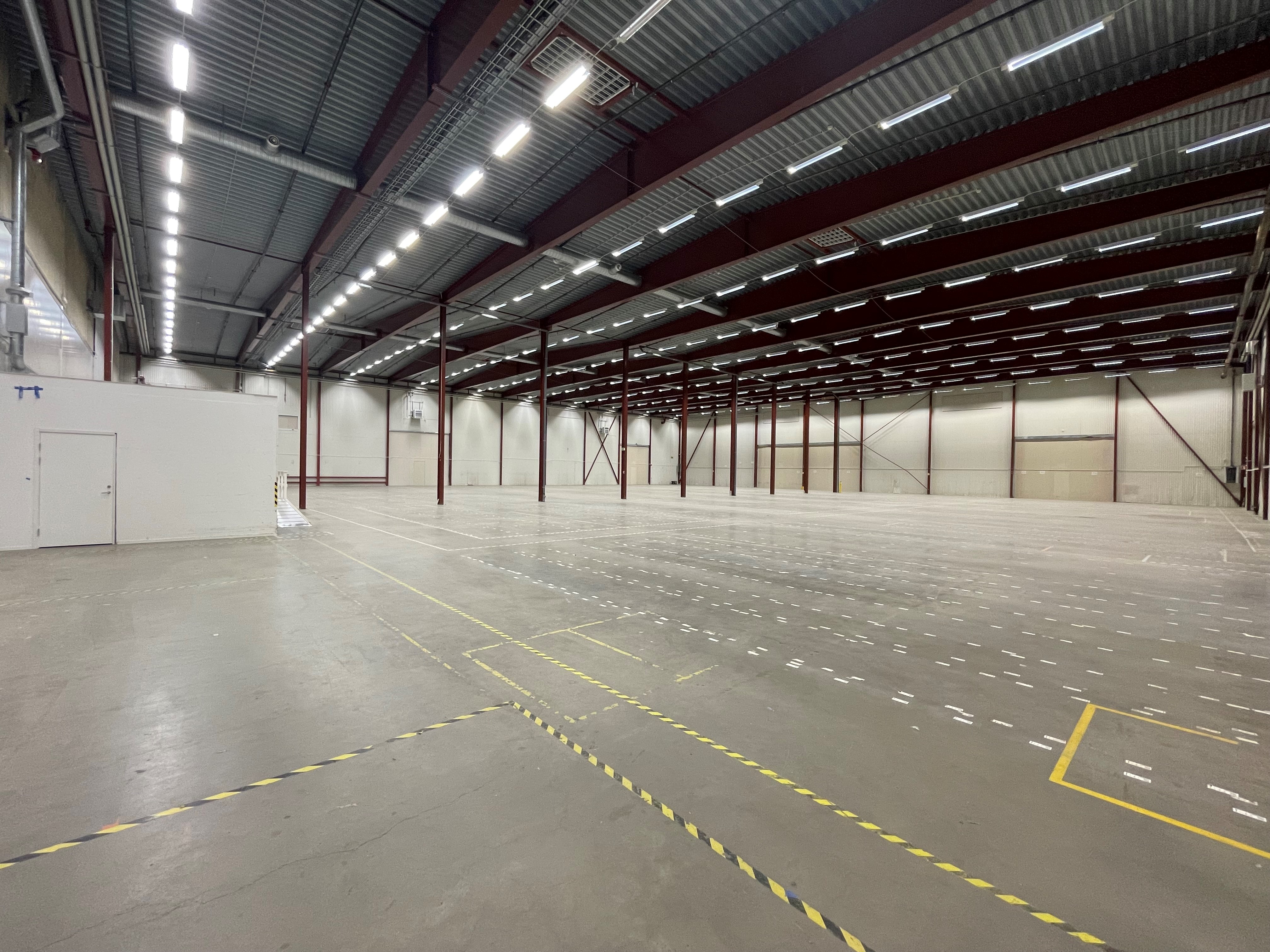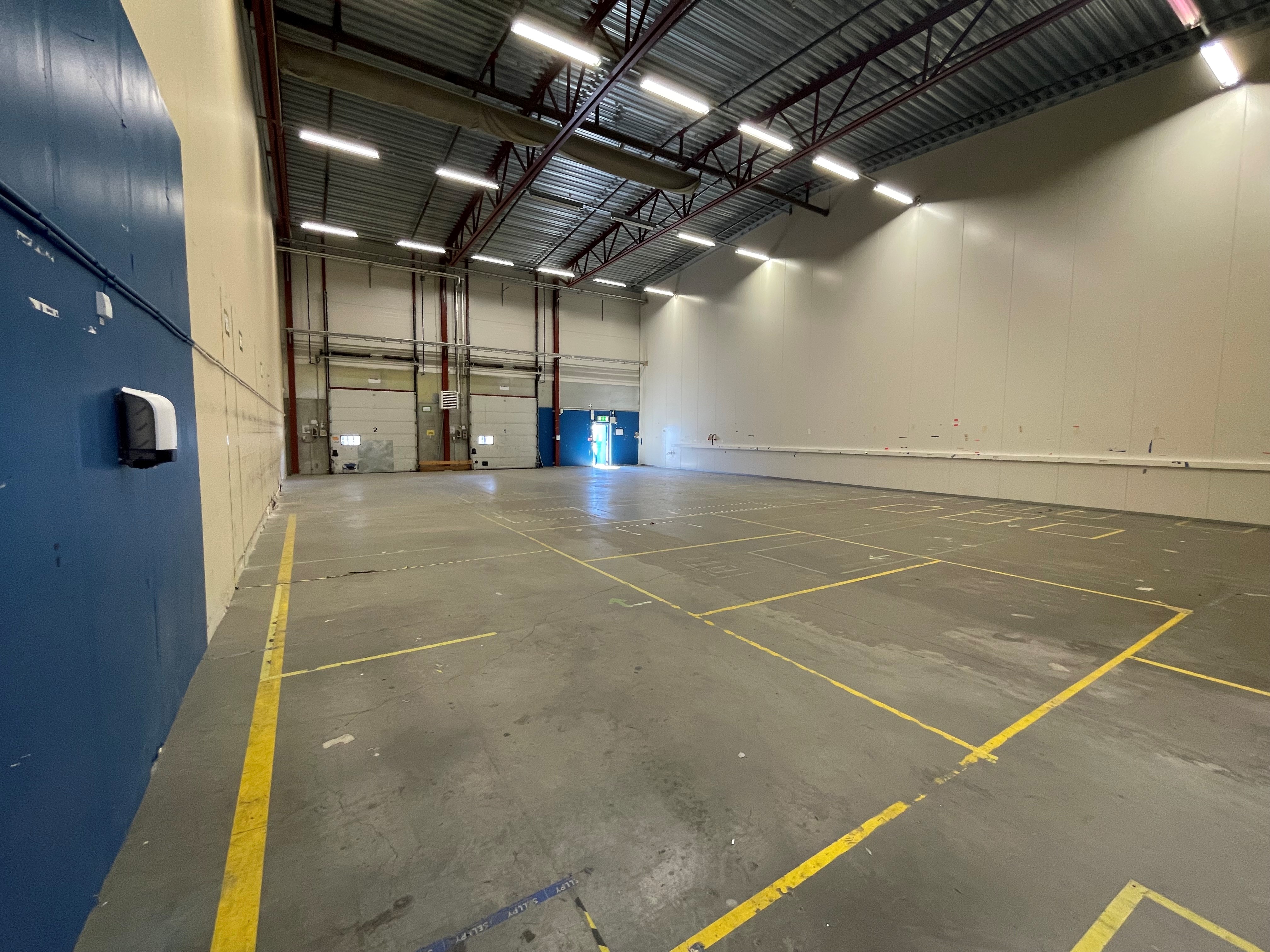 Höjd golv till tak i lagerhallen: ca 9m