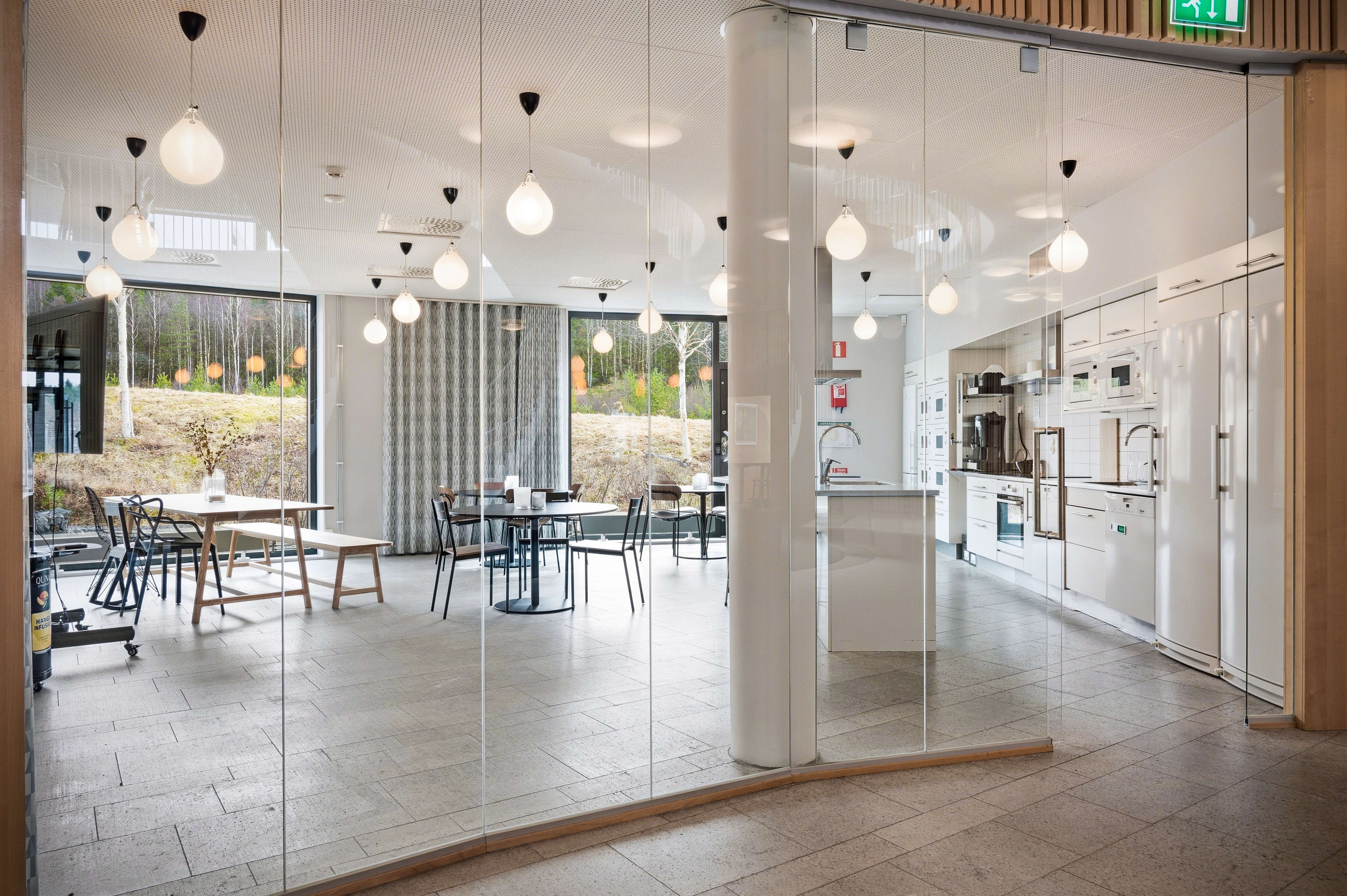 • Generöst ljusinsläpp genom glasfasader